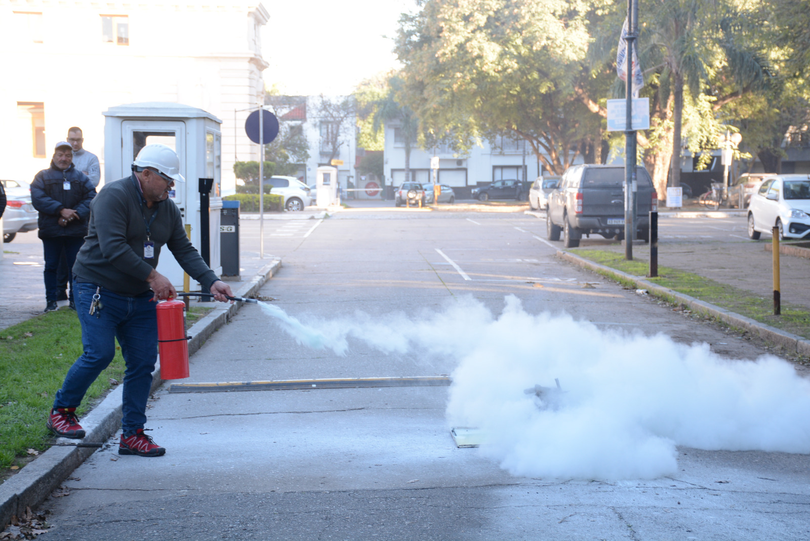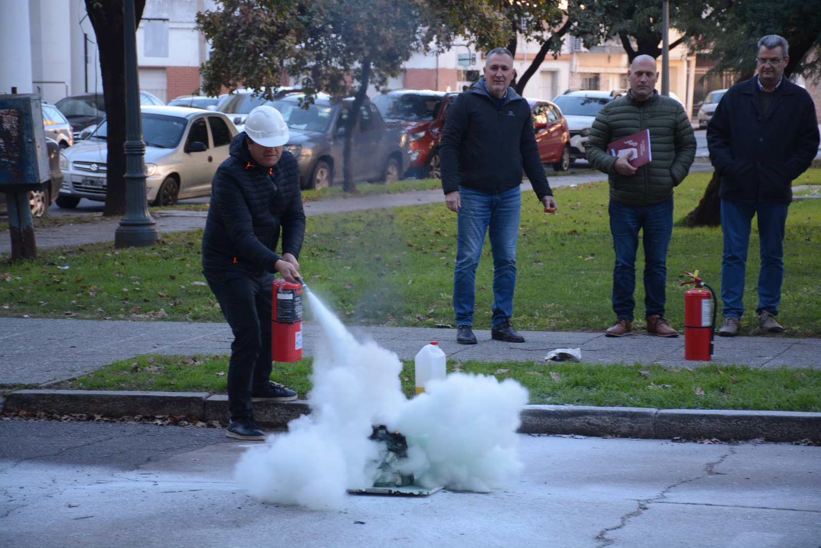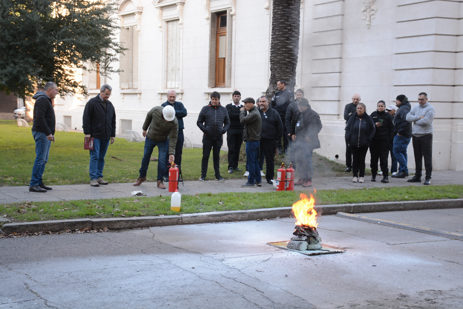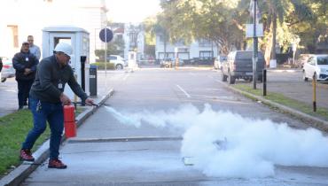 La capacitación se realizó en el Recinto de la Cámara de Senadores e incluyó una práctica con matafuegos en el exterior de la misma, efectuada el lunes 12 de junio, respetando reglas de seguridad indispensables.