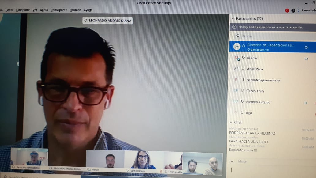 A lo largo de toda la charla estuvieron conectados el Secretario Administrativo, Carlos Bermúdez y el Senador Provincial Leonardo Diana; quienes efectuaron una breve introducción de presentación, destacaron la iniciativa en curso y el estreno del nuevo método de capacitación. También representantes de la Asociación del Personal Legislativo de Santa Fe participaron de manera remota de la capacitación; dado que impulsaron desde el inicio este tipo de formación a distancia, como otro recurso para optimizar la prestación integral de las diferentes dependencias de trabajo.