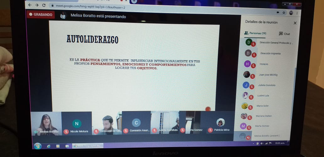 La propuesta consistió en seis encuentros on- line de treinta minutos de duración cada uno y abiertos a un posterior debate con los participantes. La capacitación se dictó de manera totalmente virtual, recurriendo a la Plataforma Google Meet. El ciclo de charlas abordó los siguientes temas: i. ¿Cómo crear una mentalidad de crecimiento?; ii. ¿Cómo generar liderazgo desde el positivismo?; iii. Manejo de miedos, iv. El valor de la perseverancia, v. Camino a la conciencia y vi. Trabajo en equipo.