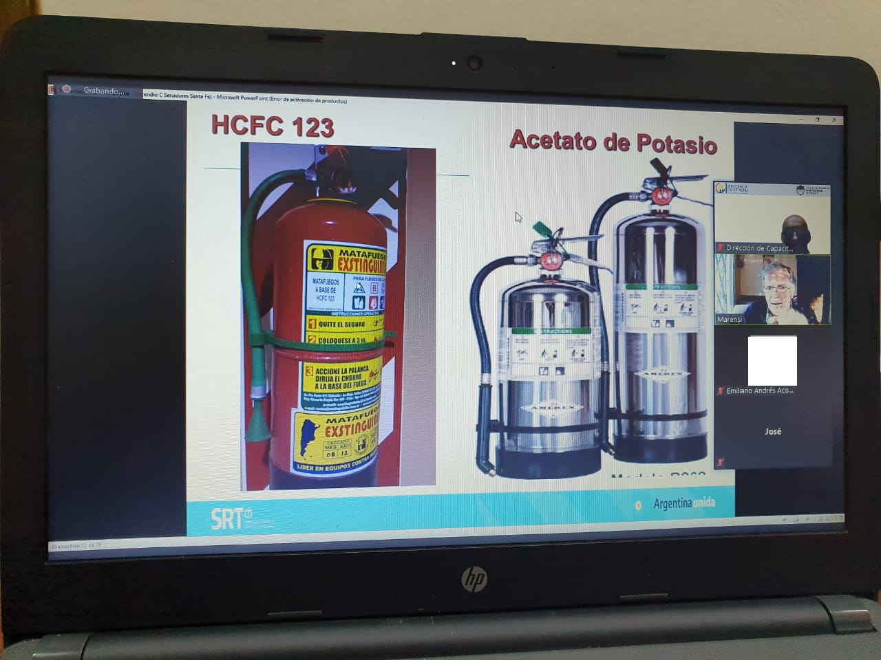 En la oportunidad, en el encuentro virtual se trató el tema protección contra incendio y sistemas de emergencia. En el mismo, se abordaron cuestiones como concepto básico de combustión, clasificación de los tipos de fuego, medios de extinción, plan de emergencias y evacuación, motivos para una evacuación y principales acciones a seguir para cada uno de ellos, entre otros. La actividad fue dictada por el Ing. Patricio Marensi.