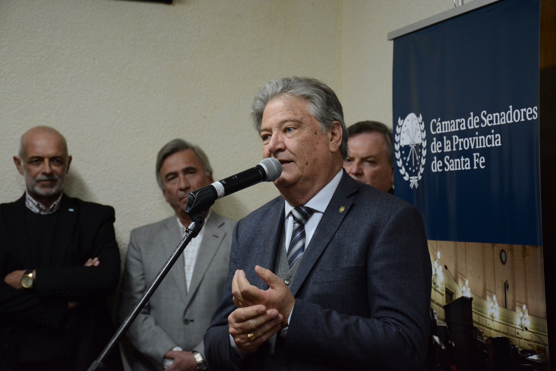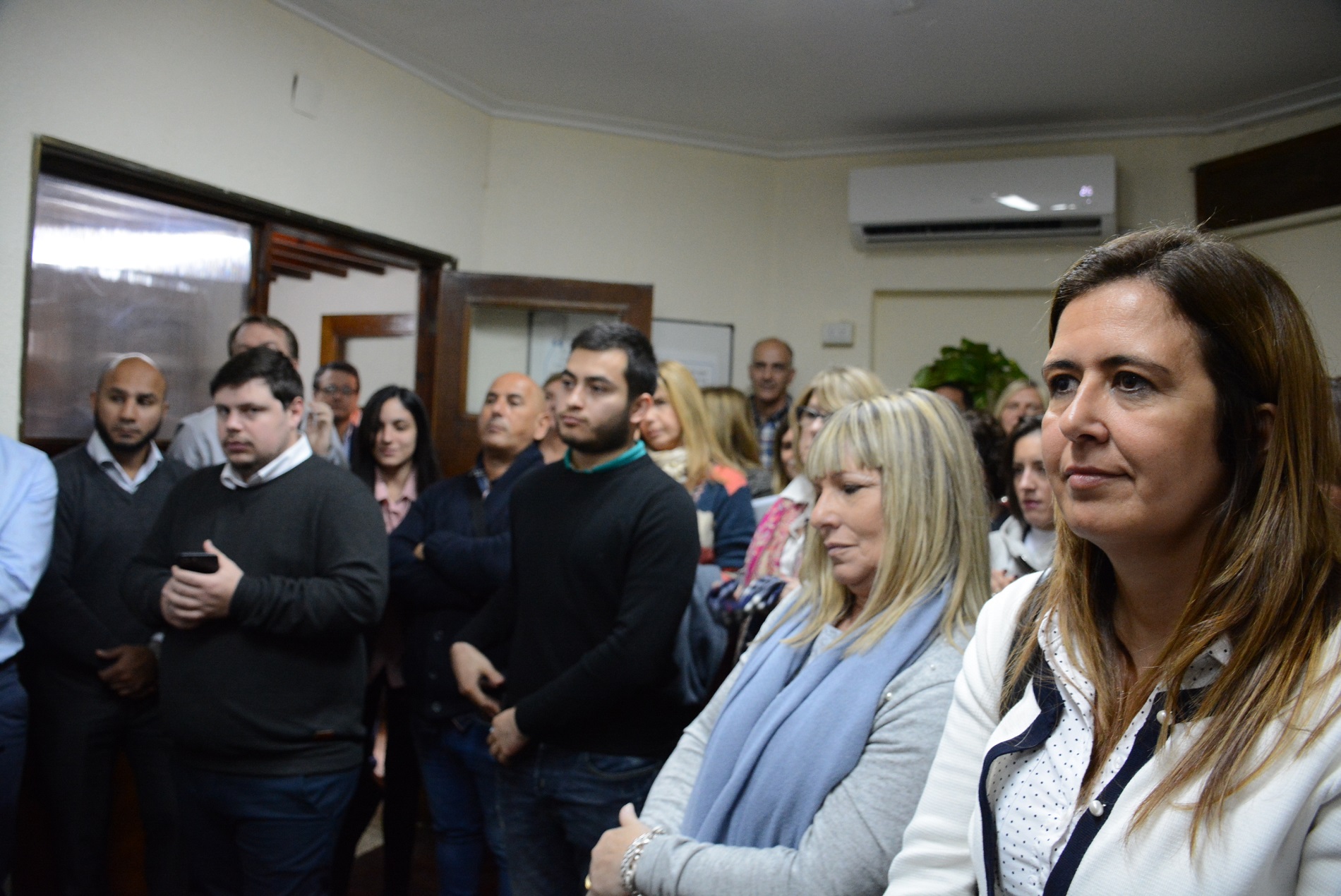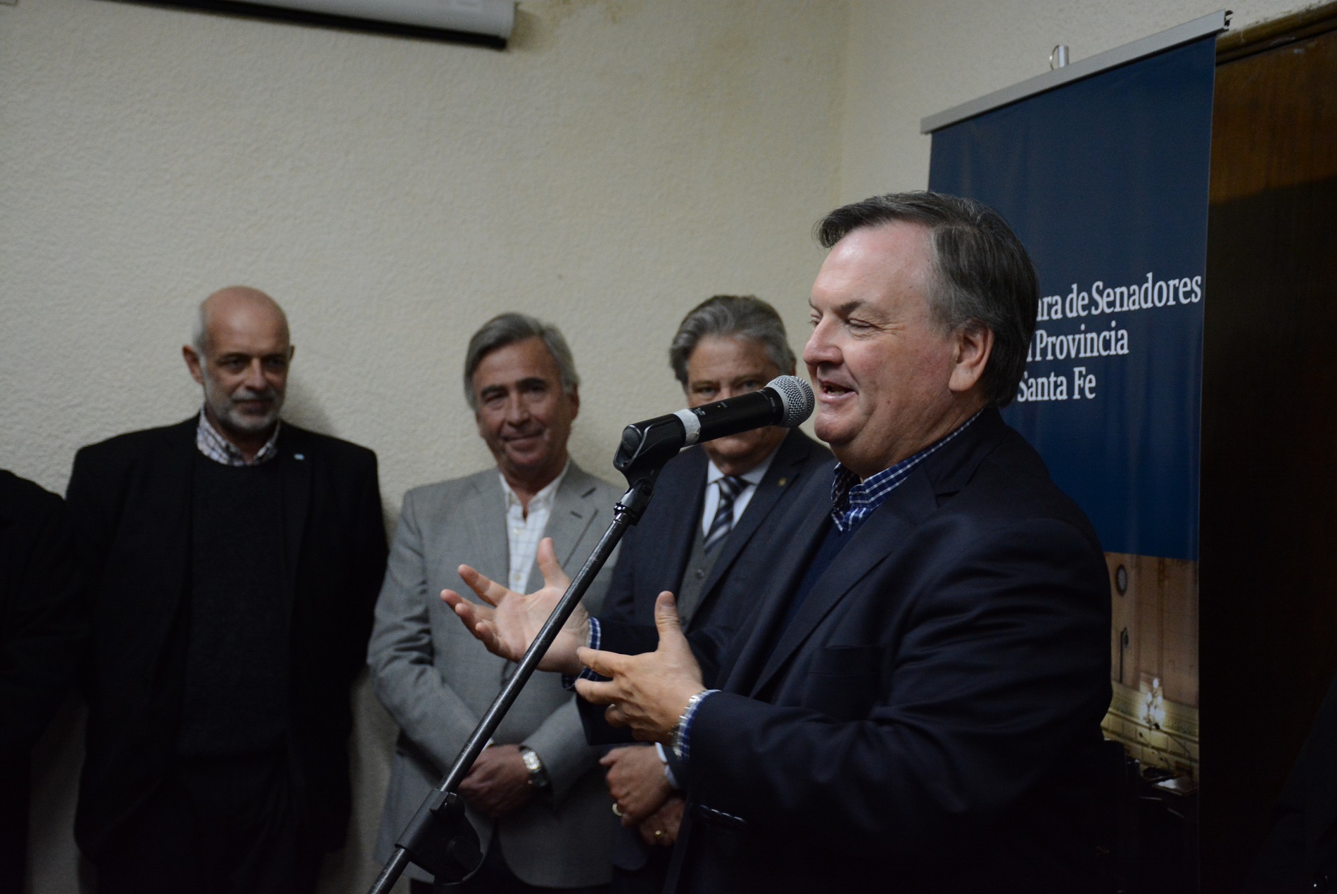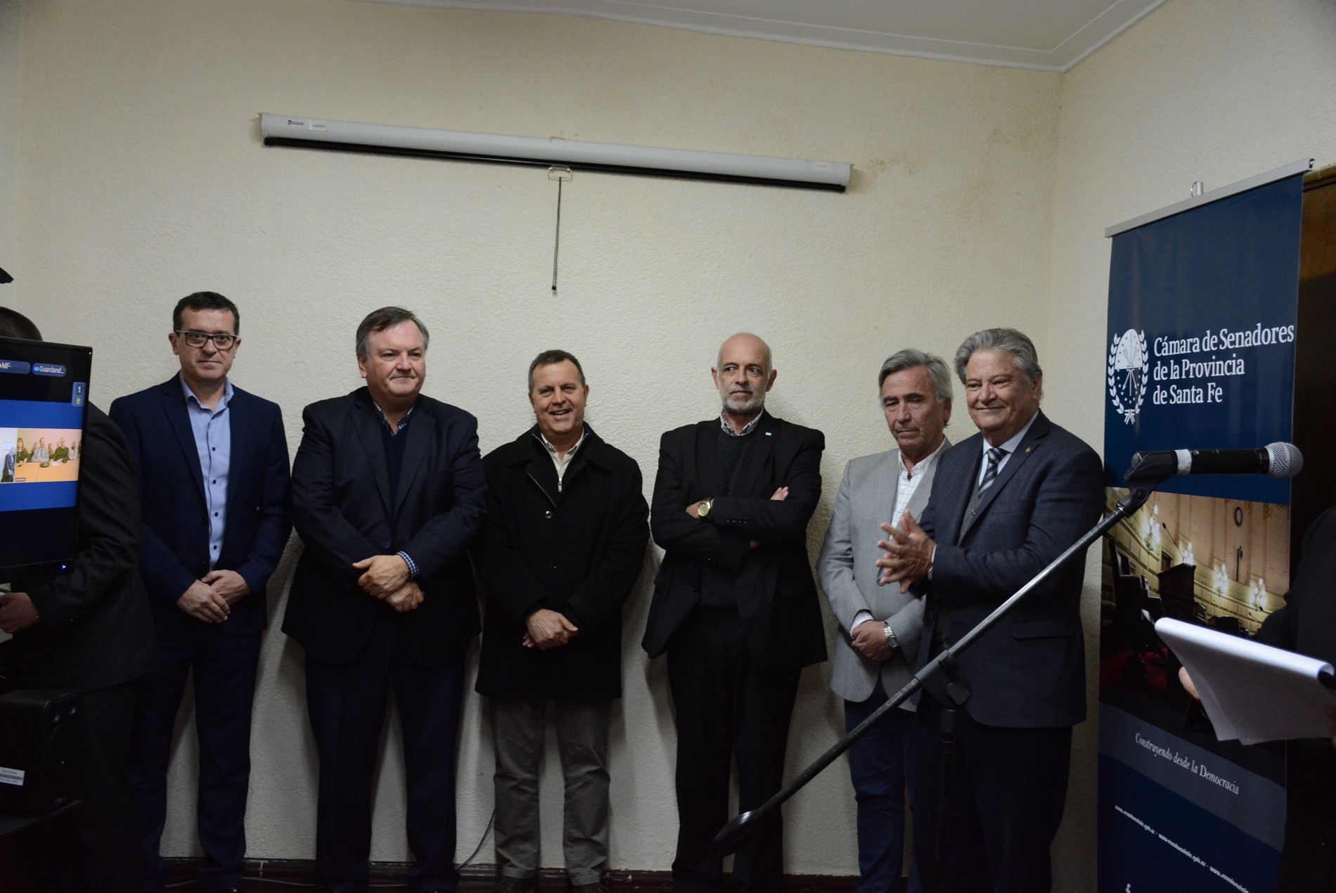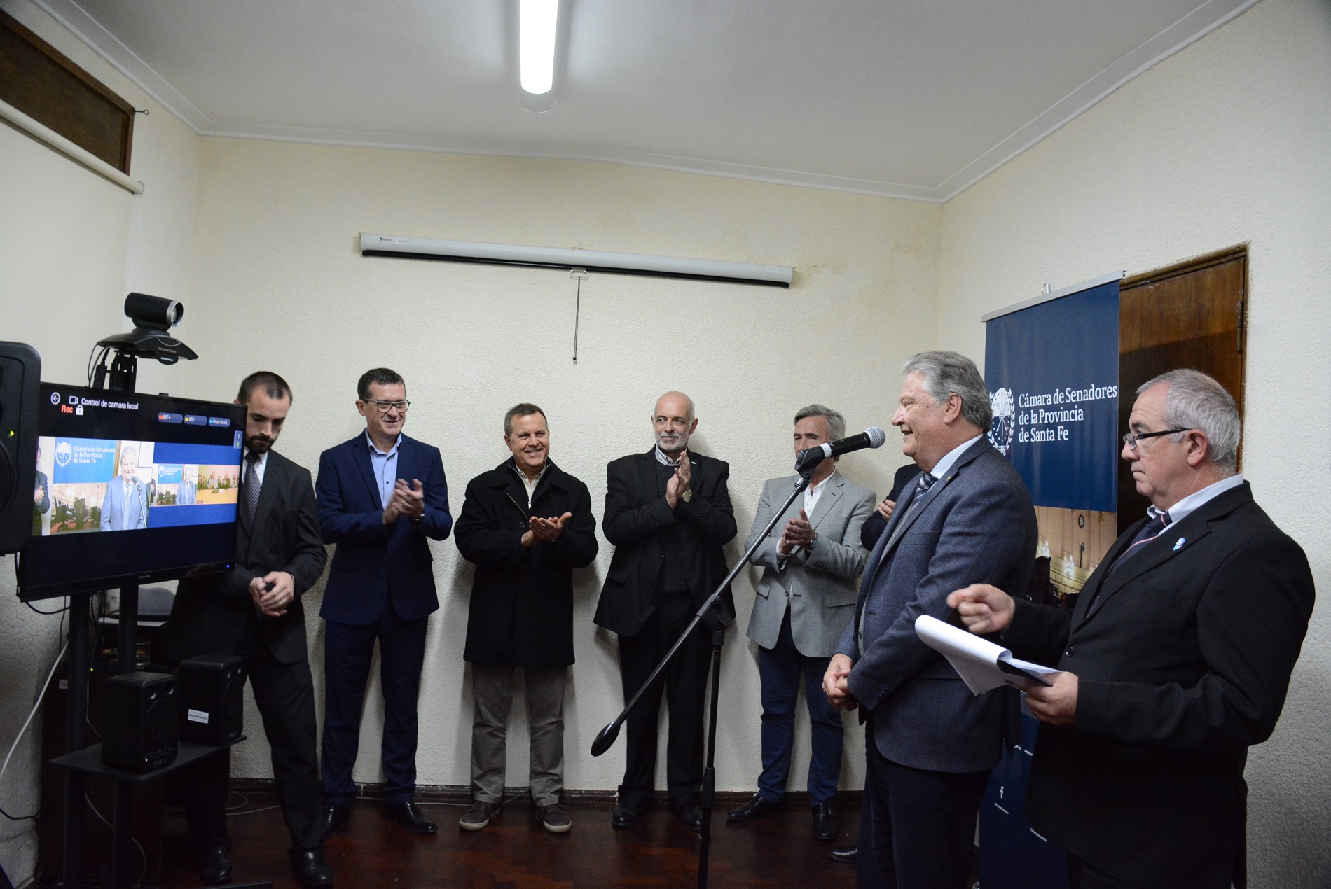 Durante la ceremonia, se descubrió una placa en la que se luce el nuevo nombre de la sala mencionada y se realizó la primera videoconferencia con el nuevo equipamiento adquirido para ese fin. Para inaugurar dicho sistema se estableció una comunicación con el senador por el departamento Rosario, Miguel Ángel Cappiello, y el director de la Delegación Rosario de la Cámara de Senadores, Guillermo Bressan, quienes se encontraban en las instalaciones de la repartición mencionada.