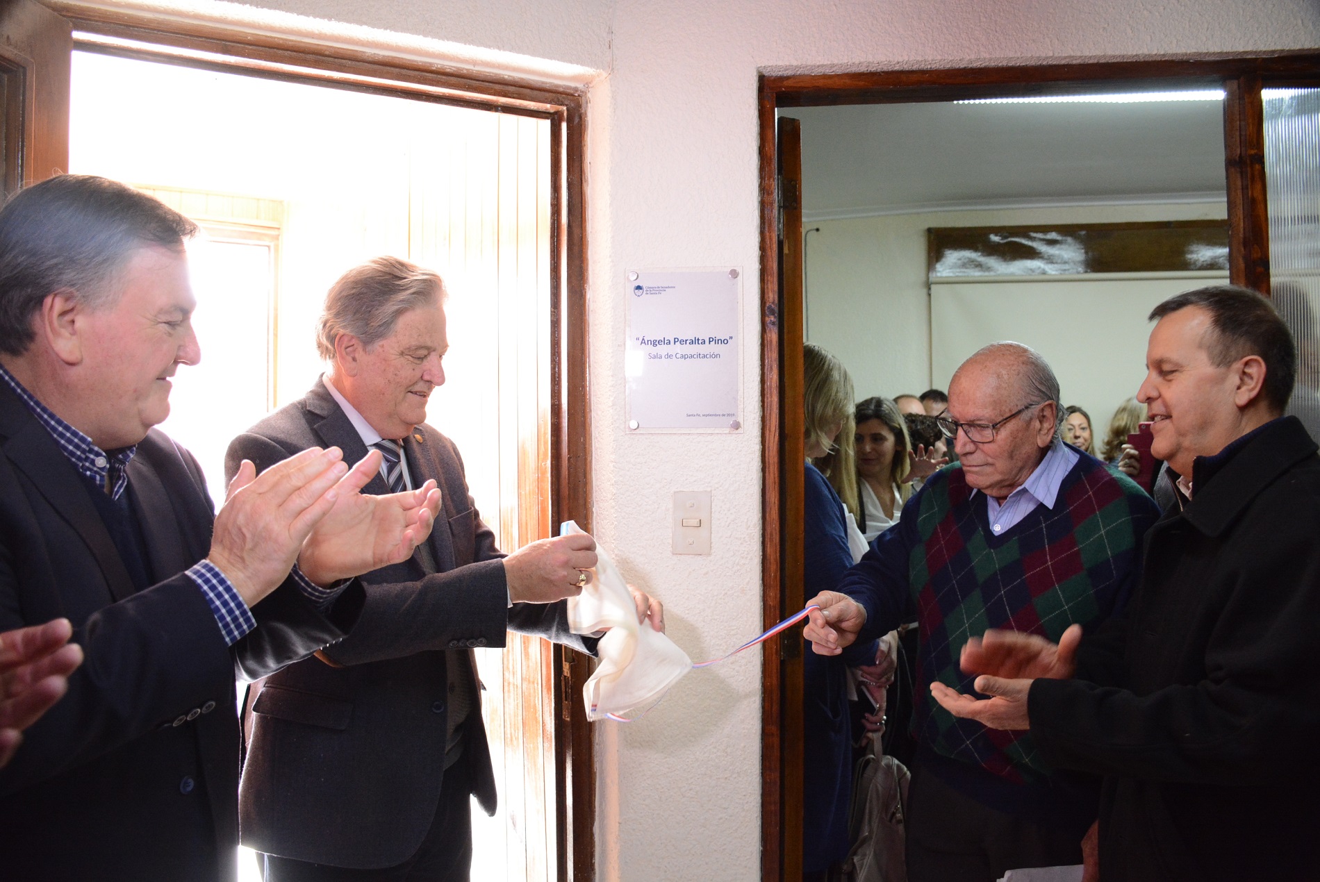 El acto se realizó en coincidencia con el Día del Maestro, en homenaje a la emblemática educadora santafesina. Durante el evento se descubrió una placa alusiva y se inauguró el equipamiento adquirido para realizar videoconferencias desde la sala.