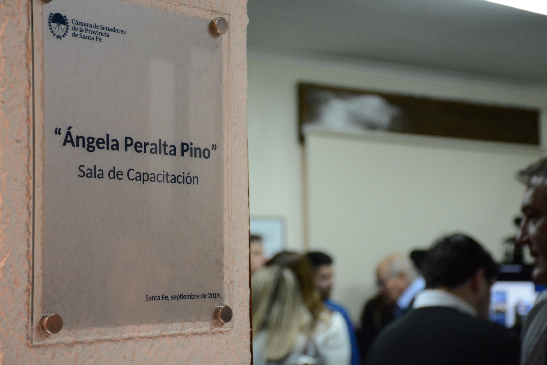 En el acto estuvieron presentes el Presidente de la Cámara de Senadores, Vicegobernador Carlos Alcides Fascendini; el senador por el departamento San Cristóbal, Felipe Michlig; el secretario legislativo, Ricardo Paulichenco; el subsecretario, Fernando Asegurado; invitados especiales, docentes, empleados y representantes gremiales. También estuvo presente, José María Peralta Pino, sobrino de Ángela Peralta Pino; a quién se le entregó un diploma de reconocimiento por la trayectoria de su familiar.