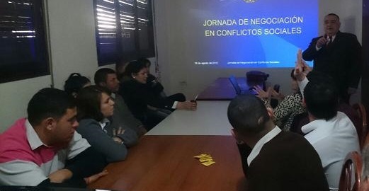 Este martes se realizó una capacitación a personal de distintas áreas de la Cámara de Senadores en materia de Negociación en Conflictos Sociales. La misma fue dictada por el comisario general retirado Lic. Aniceto Raúl Morán, Director del Instituto de Seguridad Pública, dependiente del Ministerio de Seguridad de la Provincia de Santa Fe.