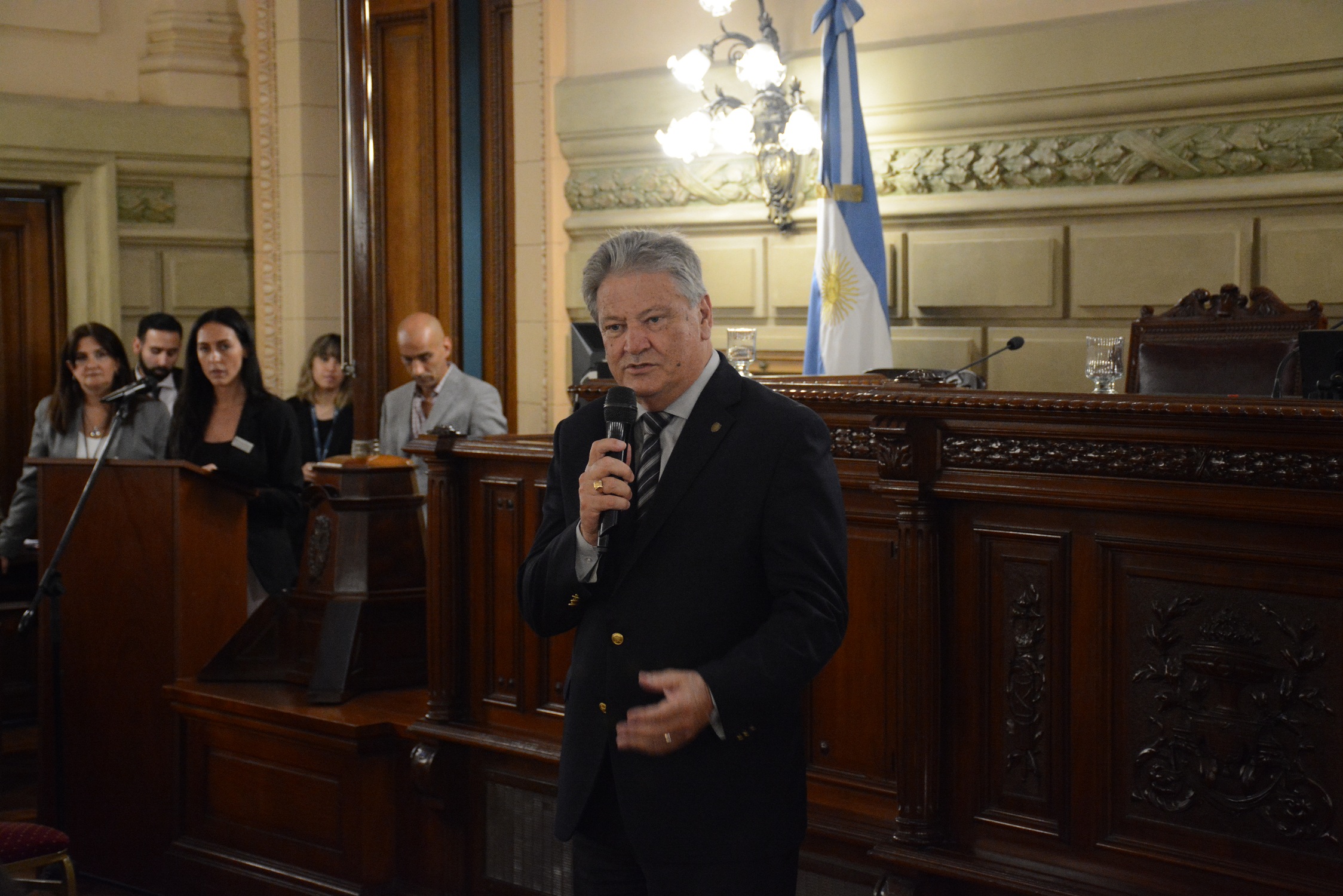 En el acto aludido estuvieron presentes el Presidente de la Cámara de Senadores, Vicegobernador Carlos Alcides Fascendini; el Presidente de la Cámara de Diputados, Antonio Bonfatti, el Secretario Administrativo, Carlos Bermúdez; el Subsecretario, Fernando Asegurado; representantes de la Universidad Tecnológica Nacional Regional Santa Fe, de la Universidad Católica de Santa Fe, del área de Emergencias Sanitarias del Ministerio de Salud de la Provincia de Santa Fe, de la Asociación del Personal Legislativo (A.Pe.L.), docentes y empleados interesados.