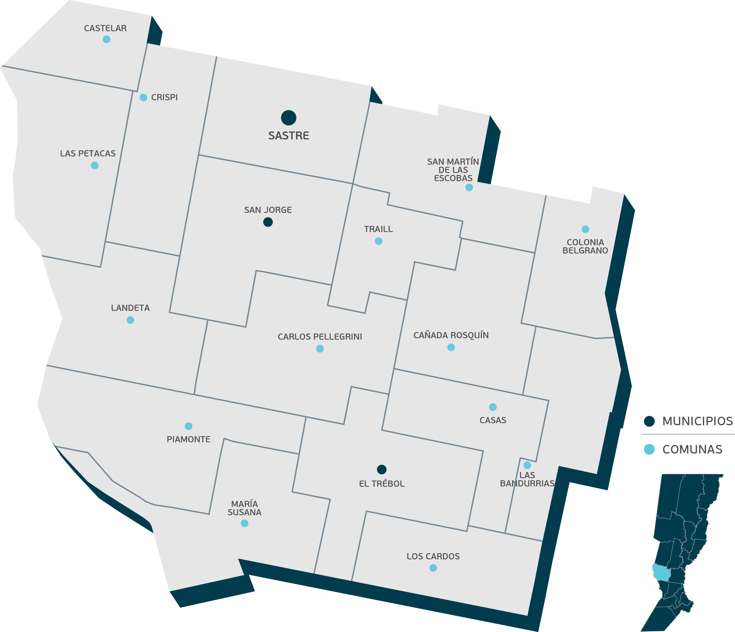 El departamento posee una extensión de 4.860 km² y limita al norte con los departamentos de Castellanos y Las Colonias, al este con el departamento San Jerónimo, al sur con el departameno Belgrano y al oeste con la provincia de Córdoba.