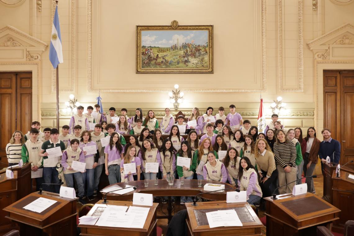 Estudiantes de las modalidades de Ciencias Naturales y Ciencias Sociales del Colegio Nuestra Señora del Calvario de la localidad de Gálvez, departamento San Jerónimo, participaron de una sesión simulada en el marco del programa Ciudadanos en el Senado, impulsada por la vicegobernadora Gisela Scaglia.