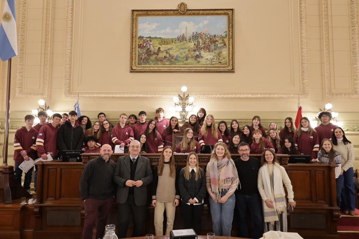 Estudiantes de la EEMPI N° 8022 "Nuestra Señora de la Misericordia" de la ciudad de Rafaela, departamento Castellanos, participaron de una sesión simulada en el marco del programa Ciudadanos en el Senado, presidida por el senador Alcides Calvo.