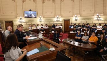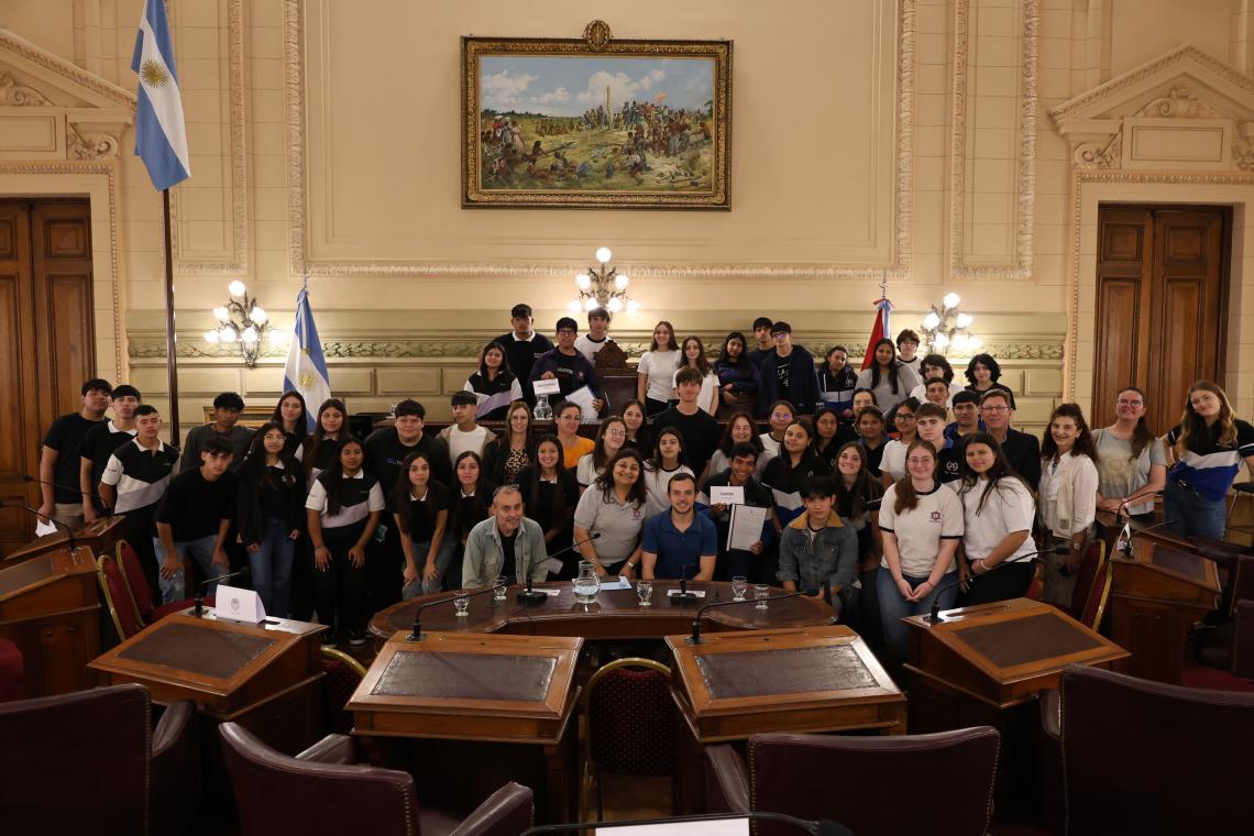 Estudiantes de la EESO N° 714 de Colonia Dolores y de la EESO N° 359 "Bernabé Vera" de Marcelino Escalada, ambas del departamento San Justo, participaron de una Sesión Simulada en el marco del programa Ciudadanos en el Senado, presidida por el senador Rodrigo Borla.