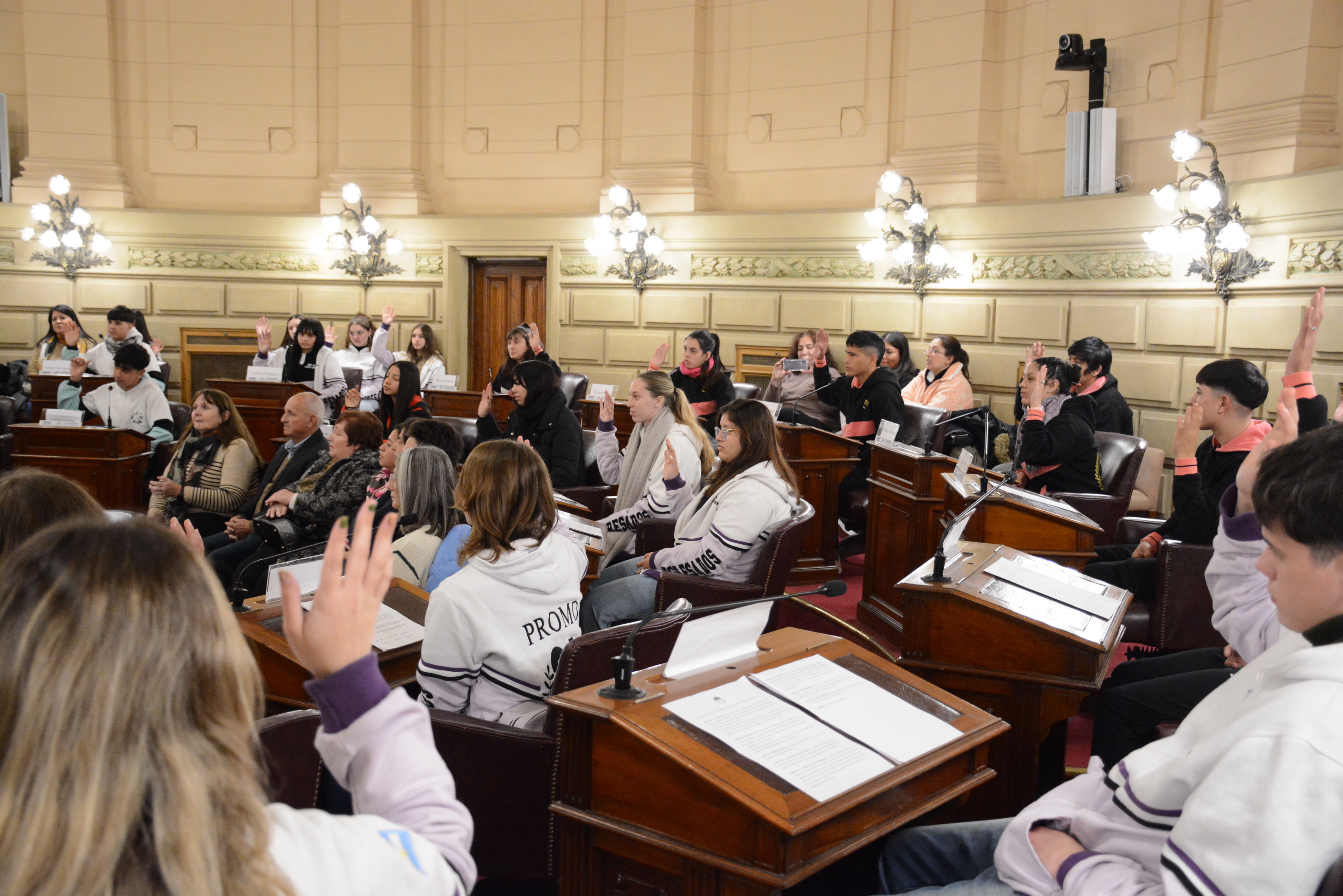 Estudiantes de las escuelas EESO N° 526 y NRESO N° 1526 de Josefina y EESO N° 588 de Estación Clucellas participaron de una sesión simulada en el marco del programa Ciudadanos en el Senado, presidida por el senador Alcides Calvo.