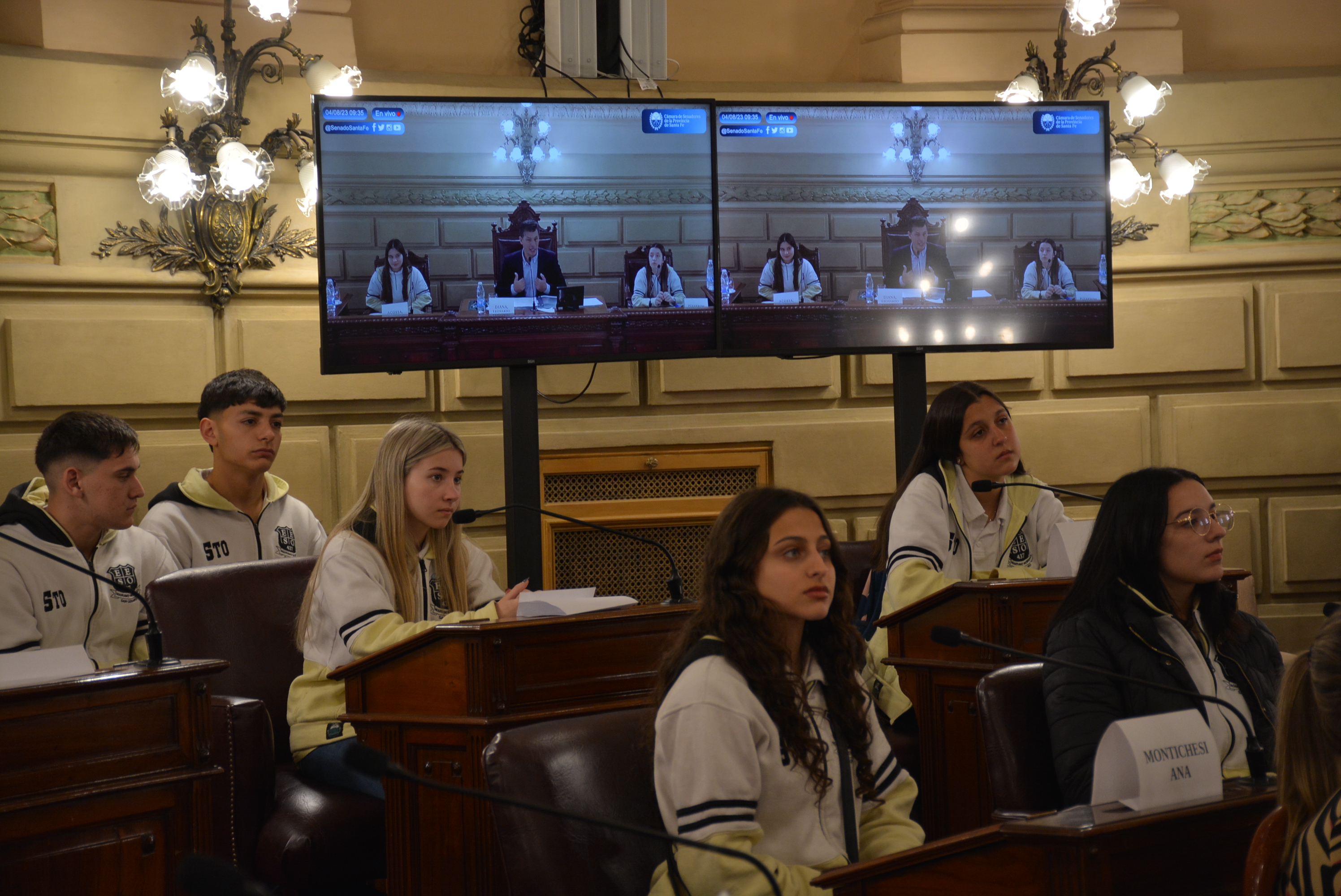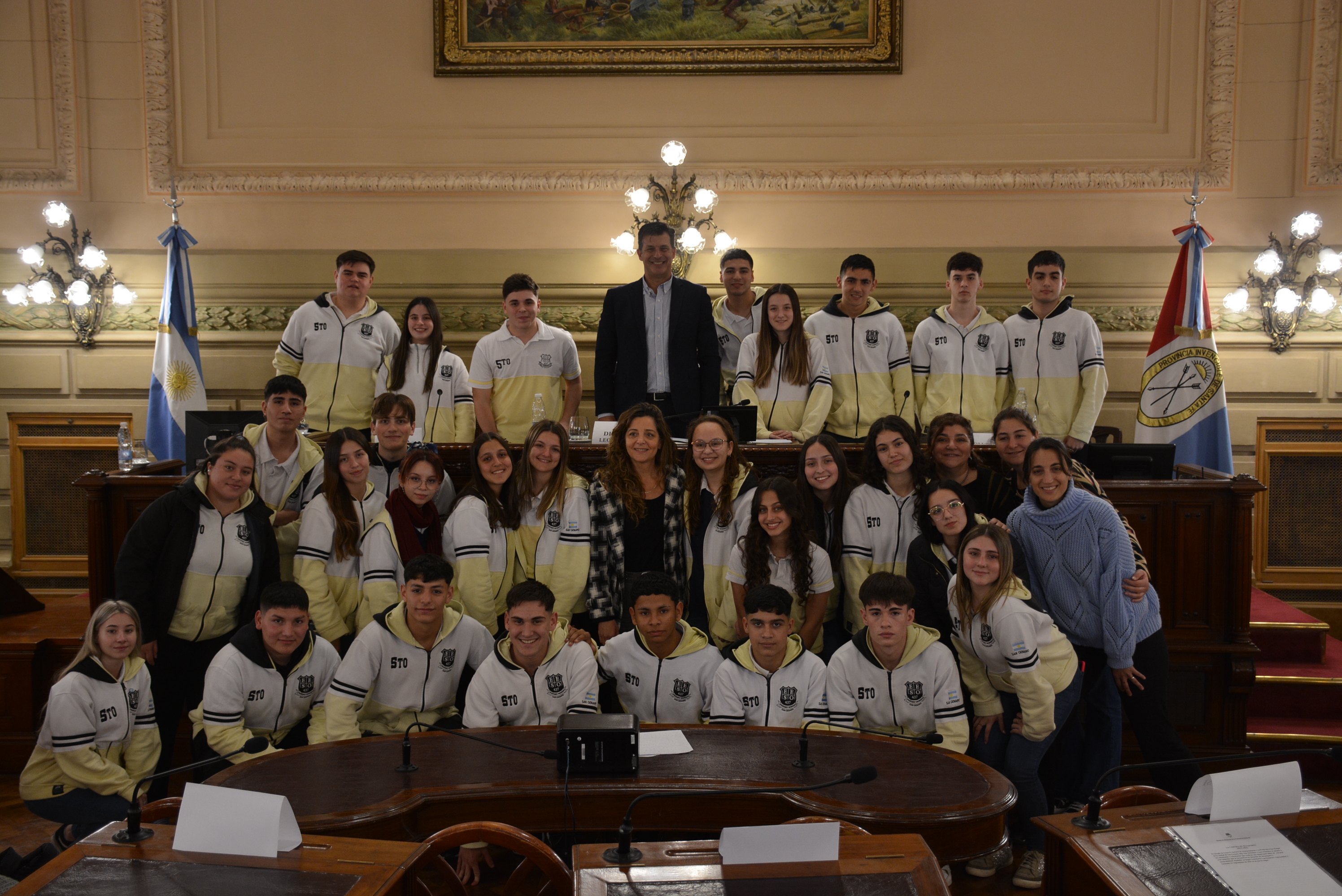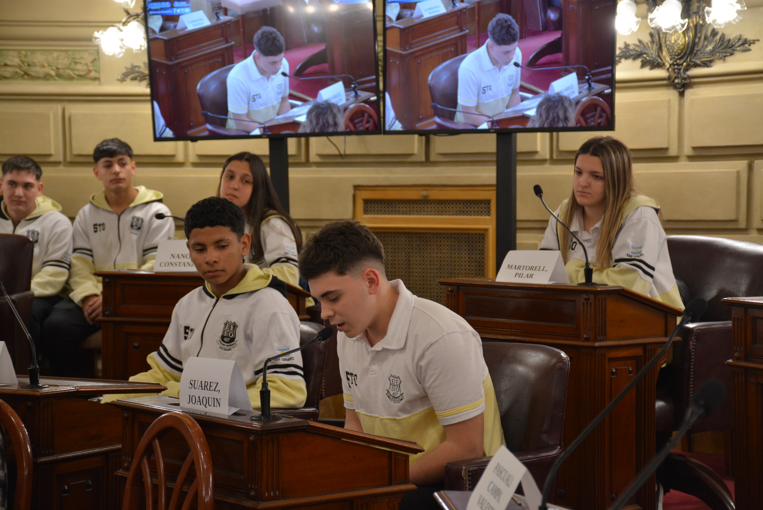 Estudiantes de la EESO N°437 "Mariano Moreno" de San Genaro realizaron una sesión simulada en el marco del programa Ciudadanos en el Senado, presidida por el senador por el departamento San Jerónimo, Leonardo Diana. Compartir en Facebook Compartir en Twitter Compartir en Whatsapp