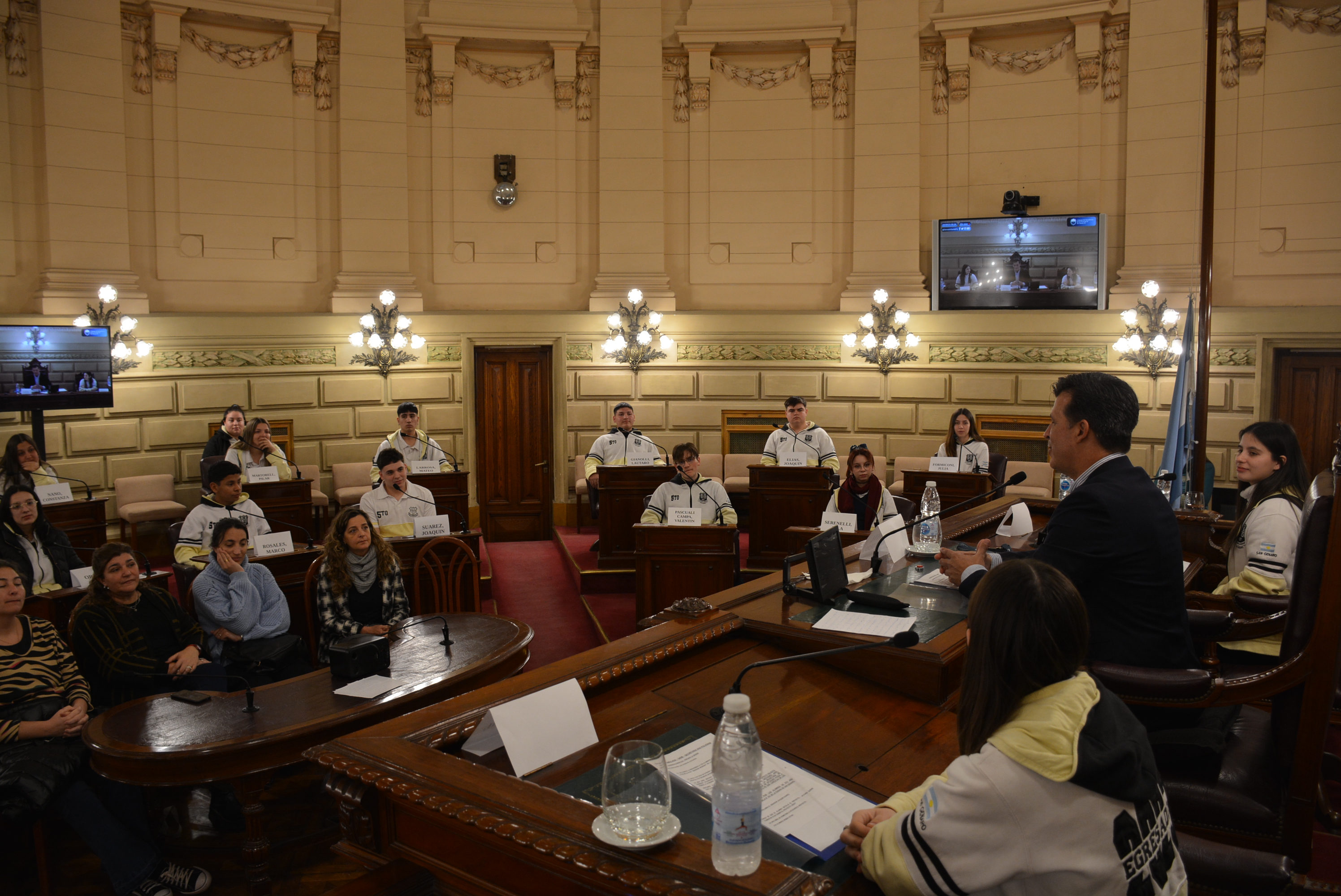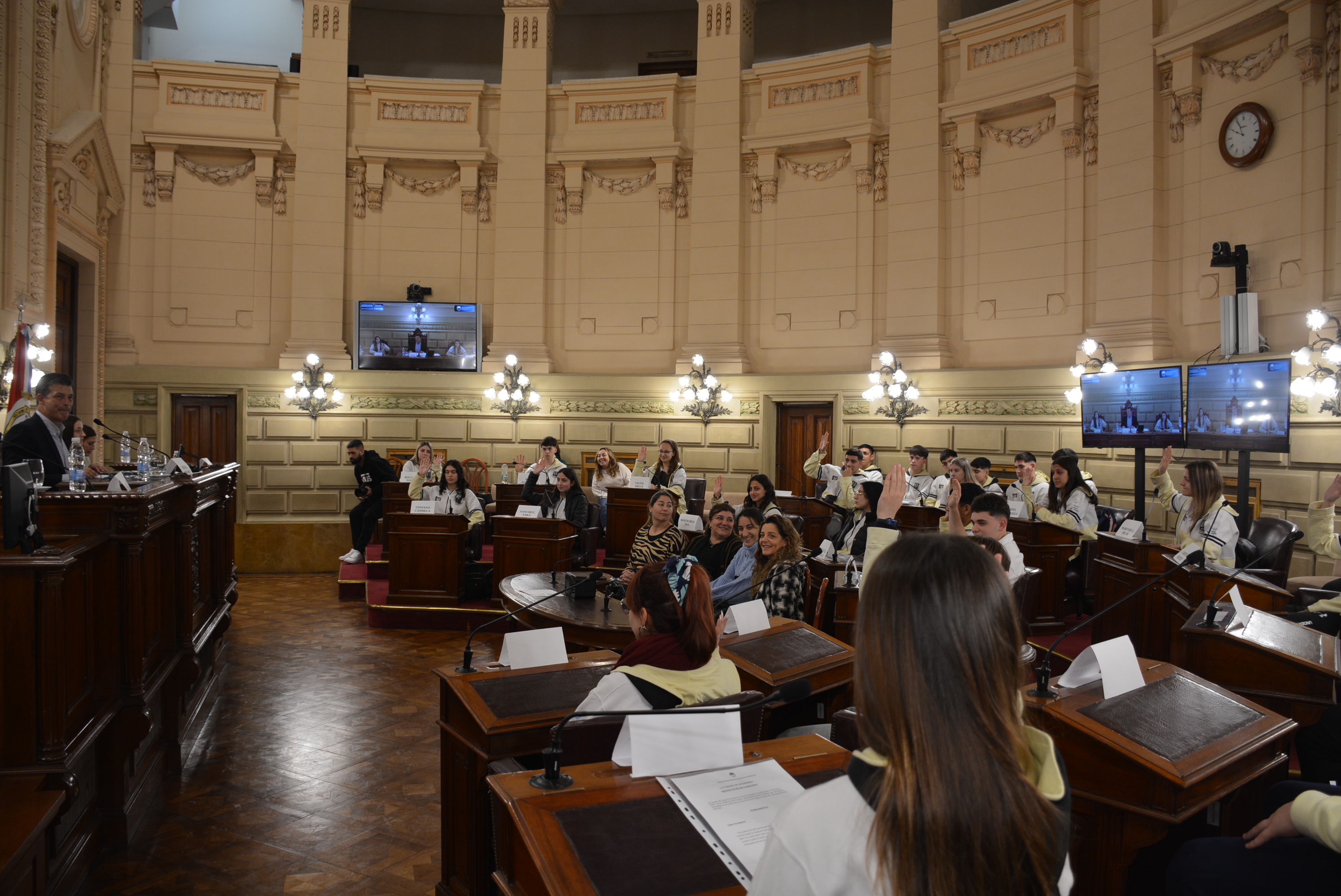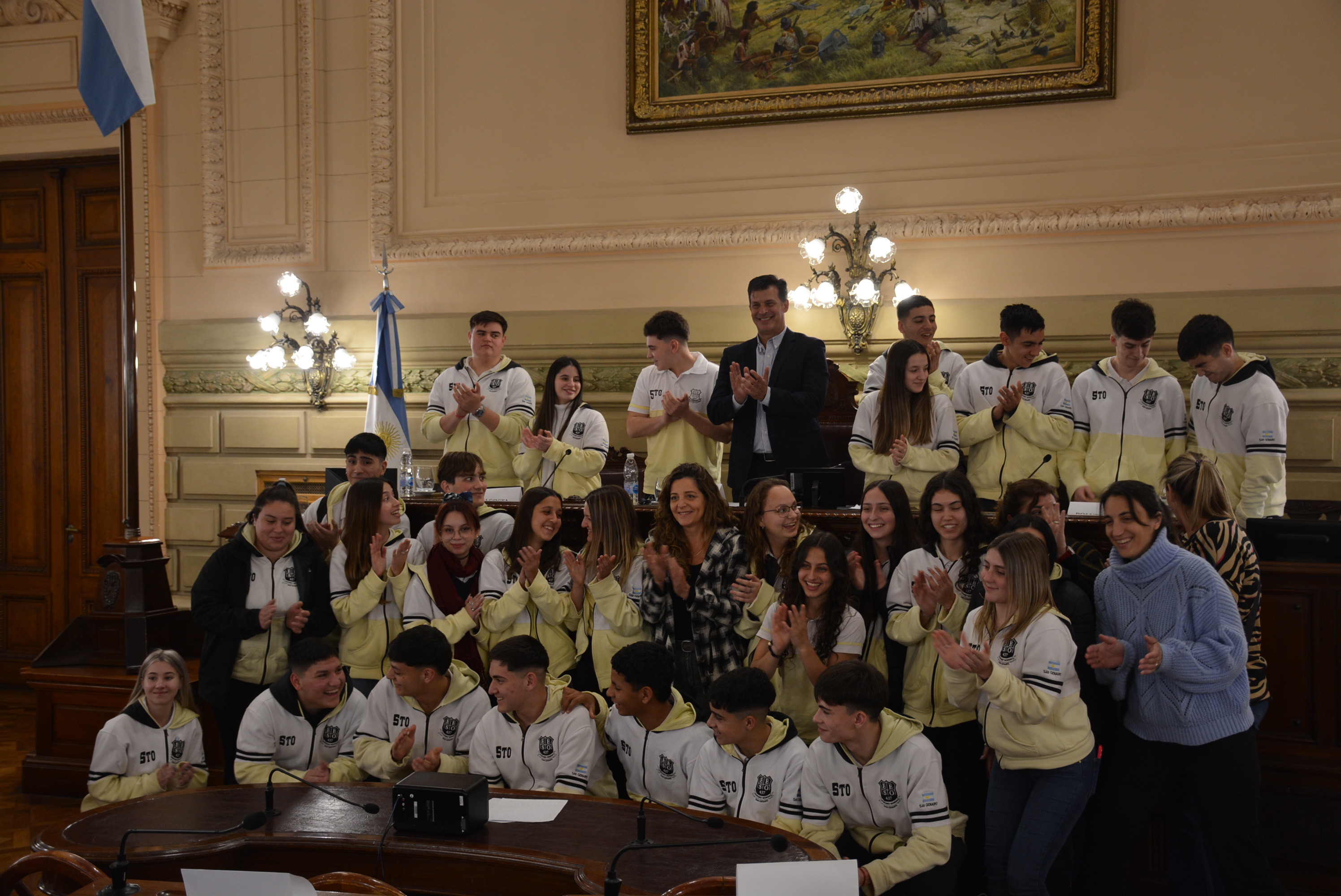 Estudiantes de la EESO N°437 "Mariano Moreno" de San Genaro realizaron una sesión simulada en el marco del programa Ciudadanos en el Senado, presidida por el senador por el departamento San Jerónimo, Leonardo Diana. Compartir en Facebook Compartir en Twitter Compartir en Whatsapp