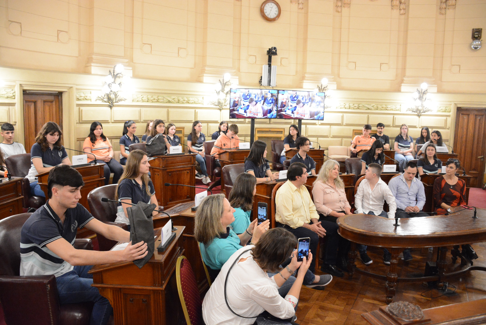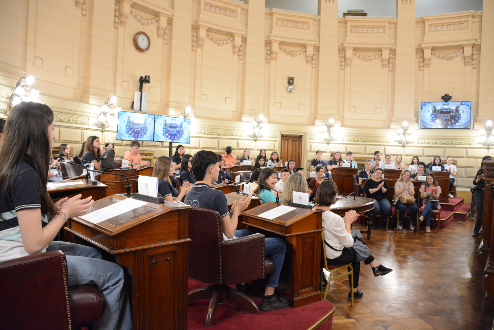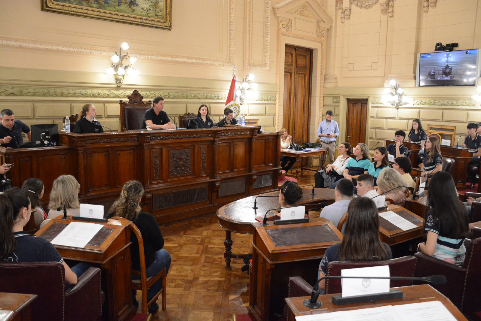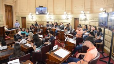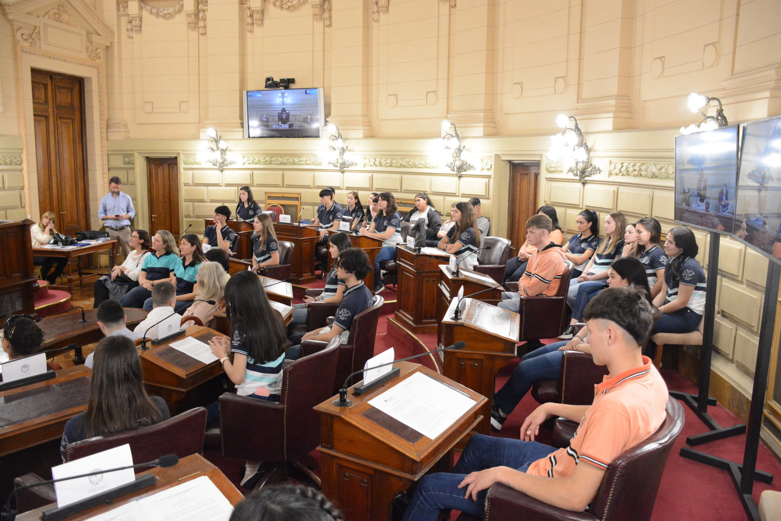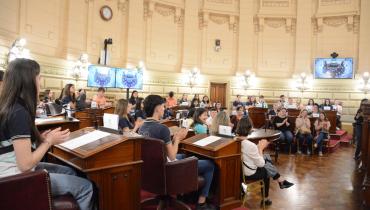 Estudiantes de la EESOPI 2027 "José M. Estrada" de Esperanza y la escuela Nucleo Rural 371 de Empalme San Carlos participaron de una sesión simulada en el marco del programa Ciudadanos en el Senado, presidida por el senador Rubén Pirola.