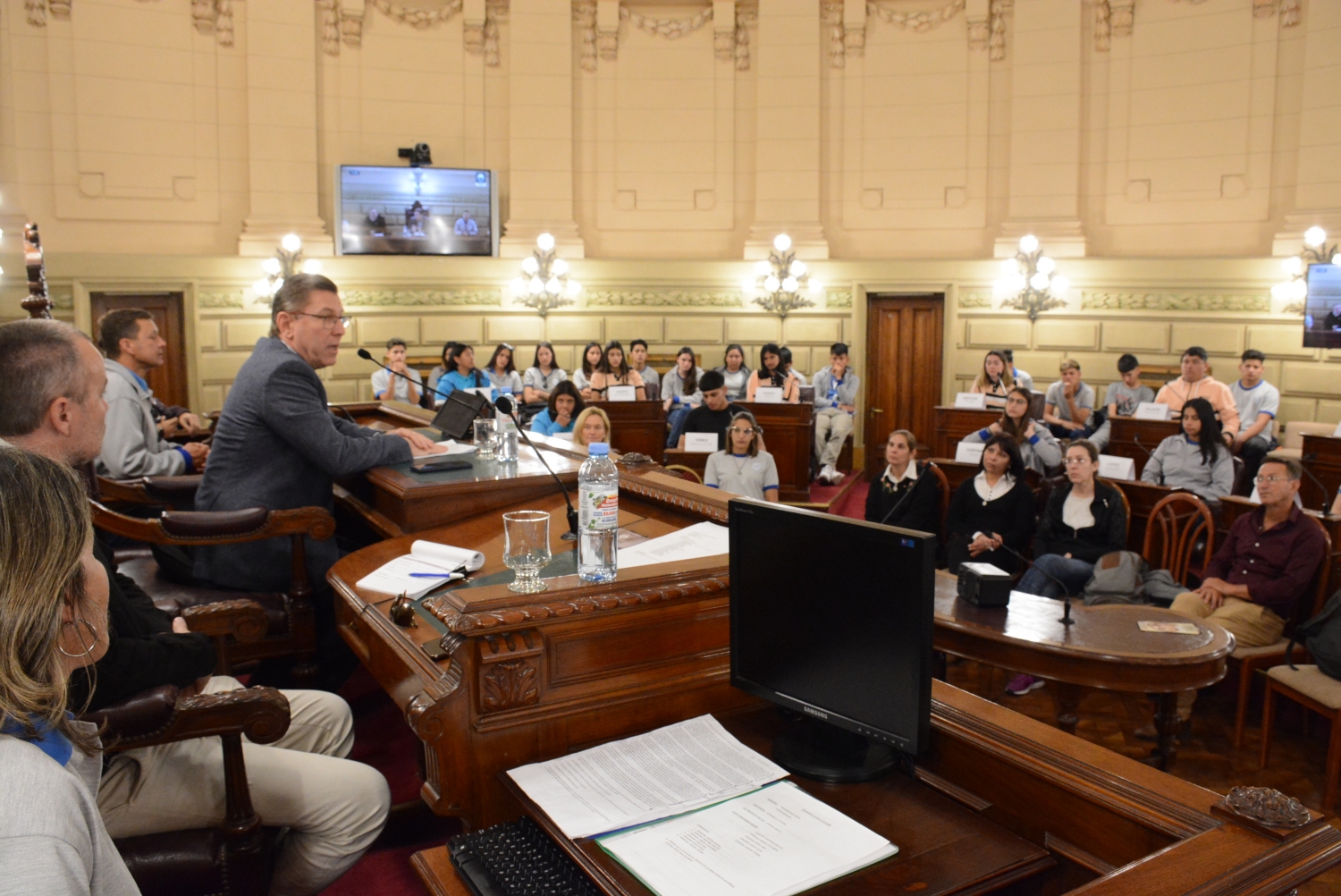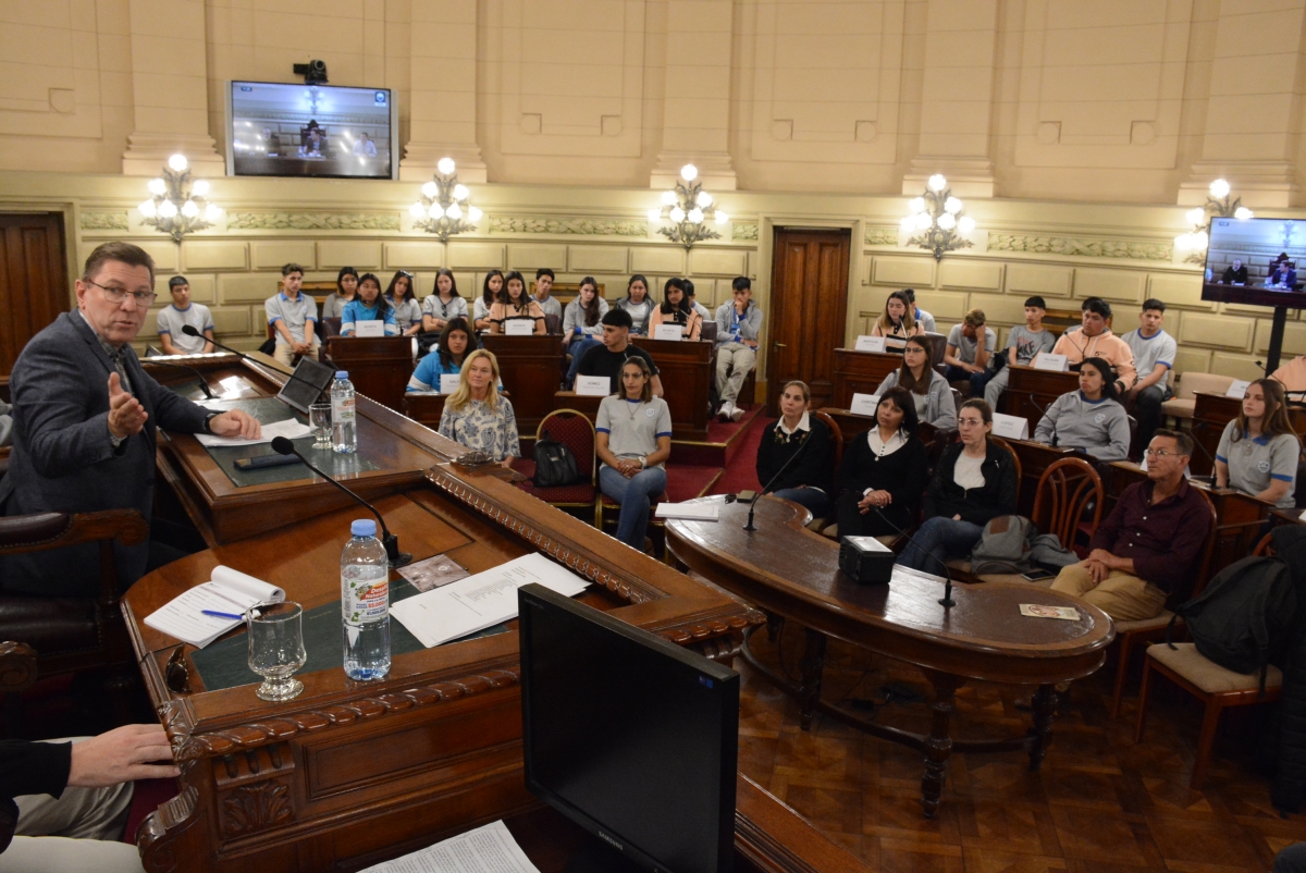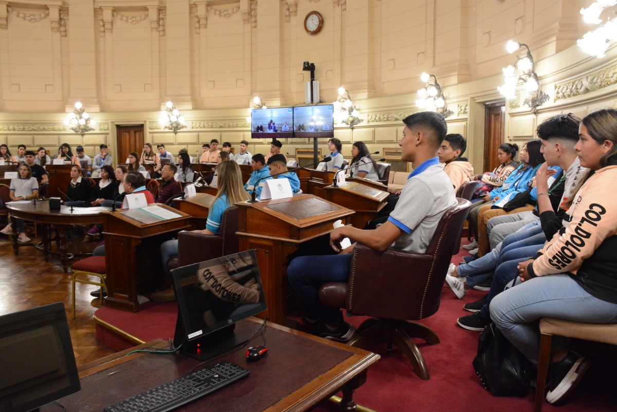 Estudiantes de la EESOPI 8209 de San Martín Norte y la EESO 714 de Colonia Dolores participan de una sesión simulada presidida por el senador Rodrigo Borla. Compartir en Facebook Compartir en Twitter Compartir en Whatsapp
