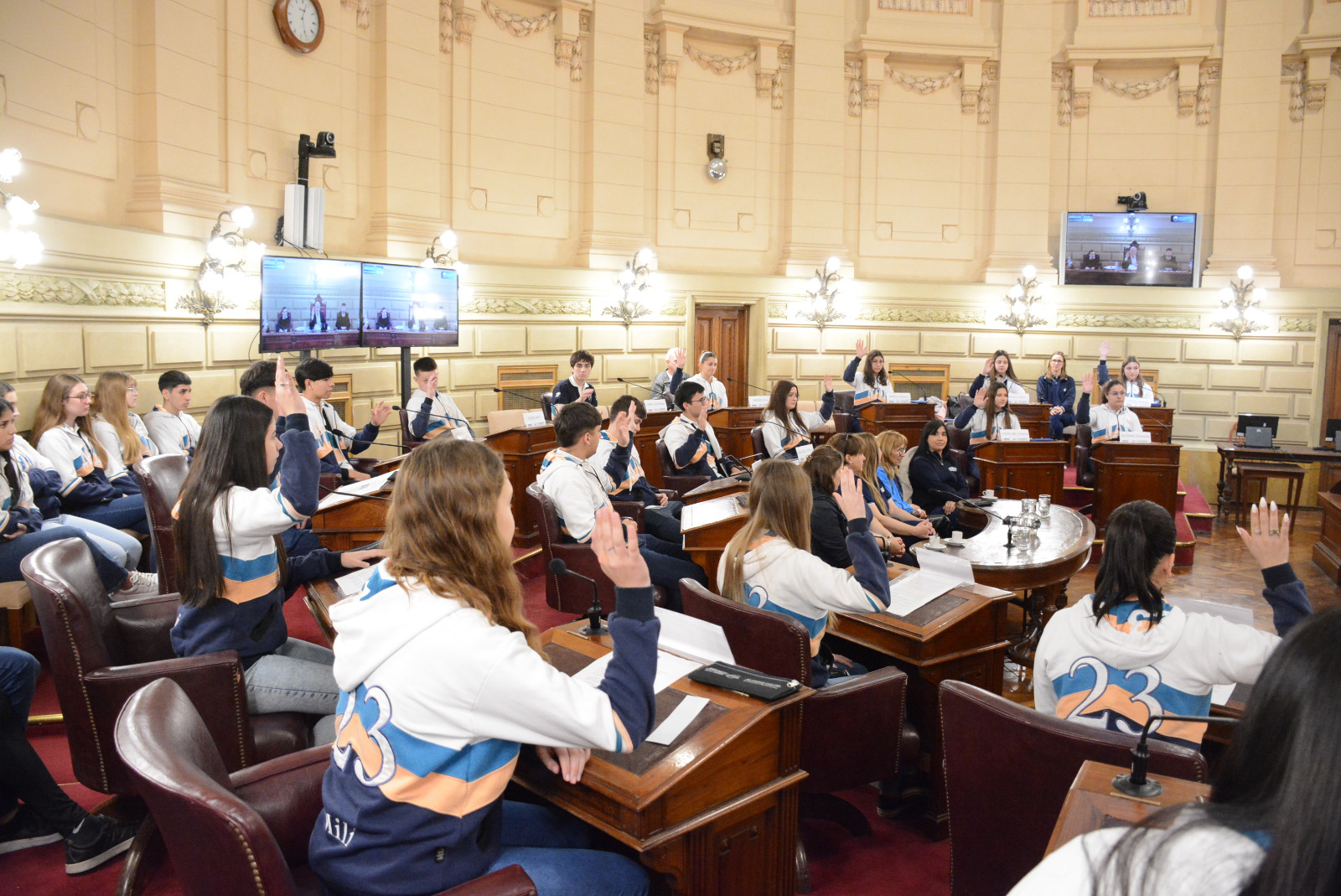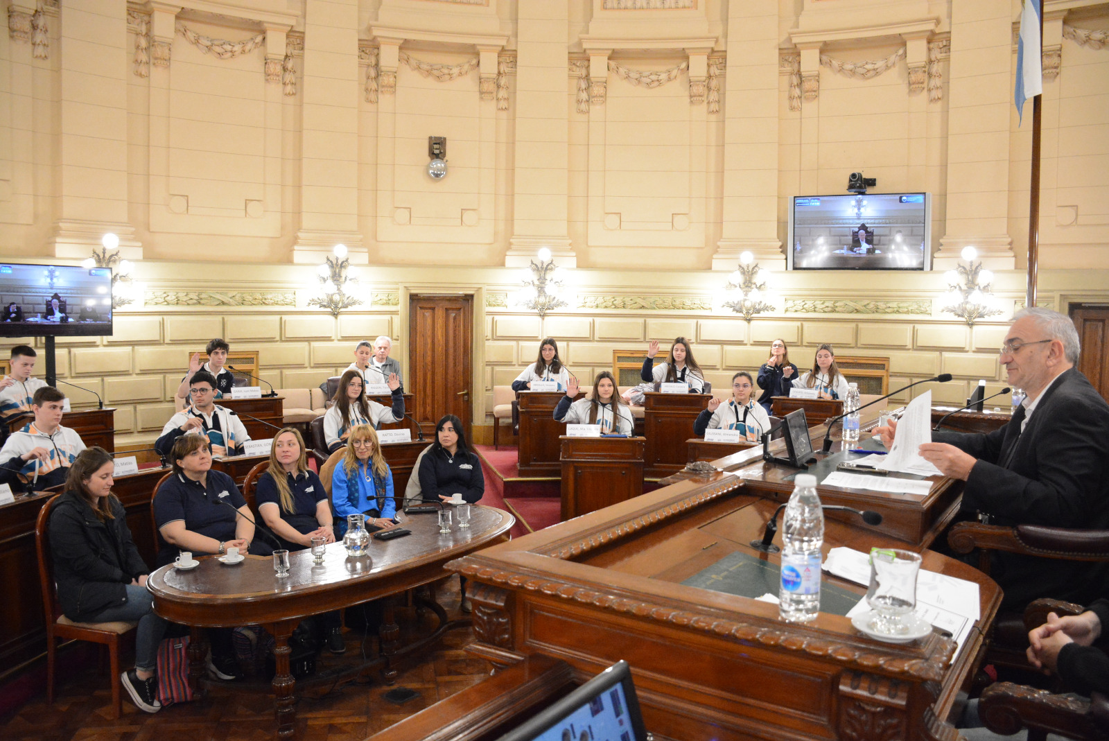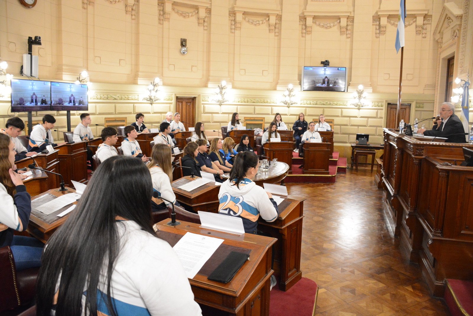 Estudiantes de la EESOPI Nº 8118 "Pedro Lucas Funes", de la ciudad de San Vicente, participaron de una sesión simulada en el marco del programa Ciudadanos en el Senado, presidida por el senador Alcides Calvo. Compartir en Facebook Compartir en Twitter Compartir en Whatsapp