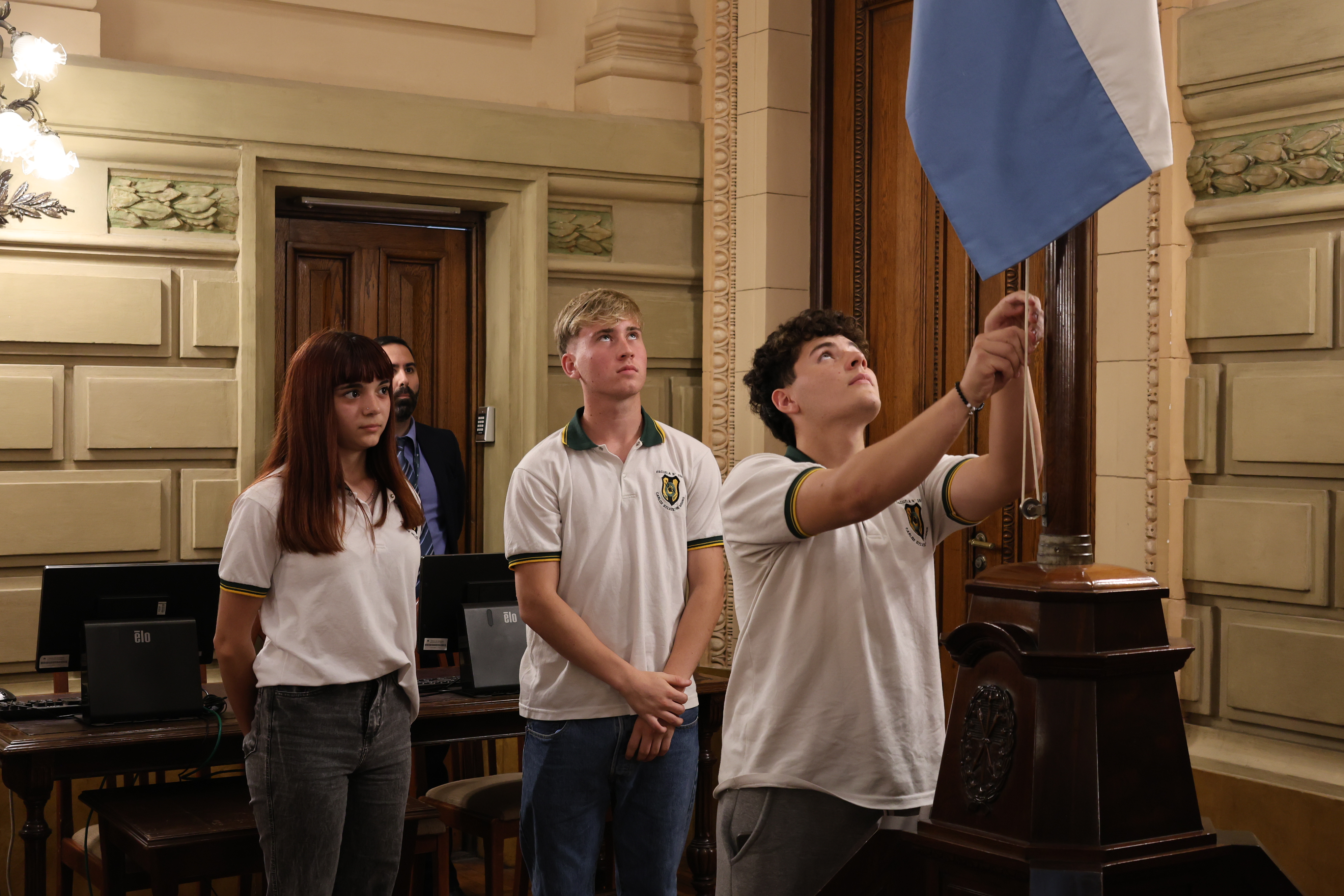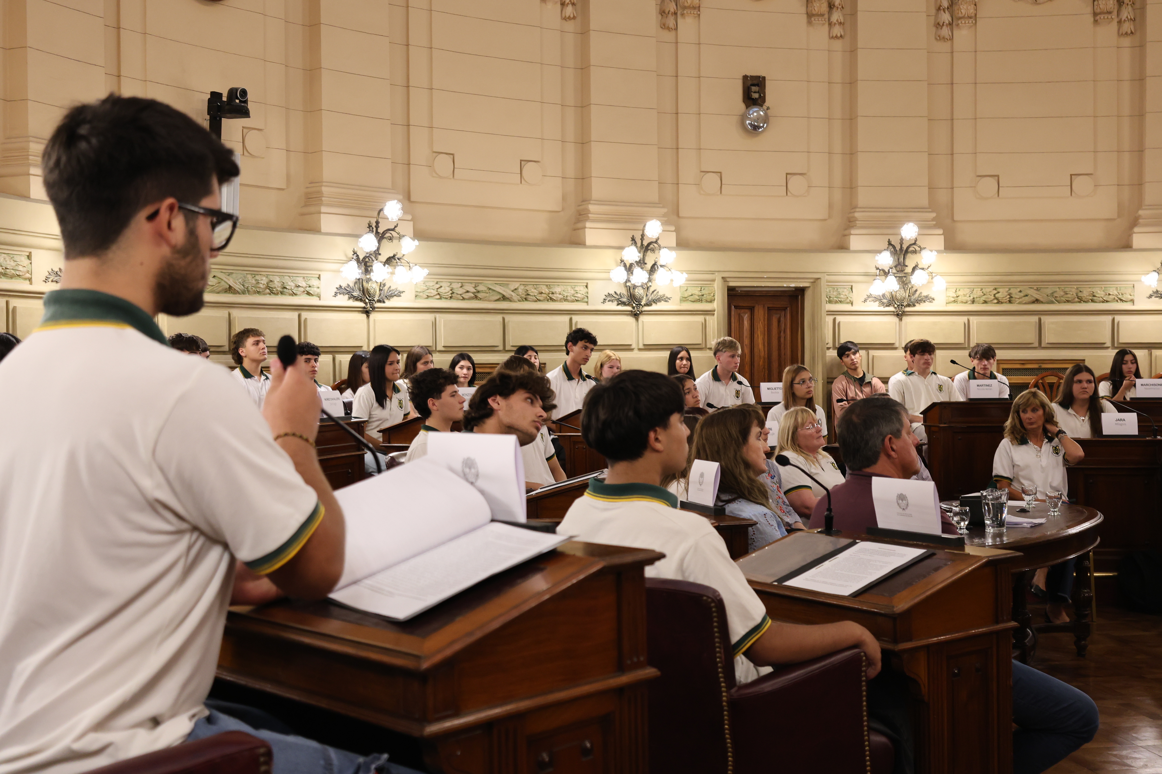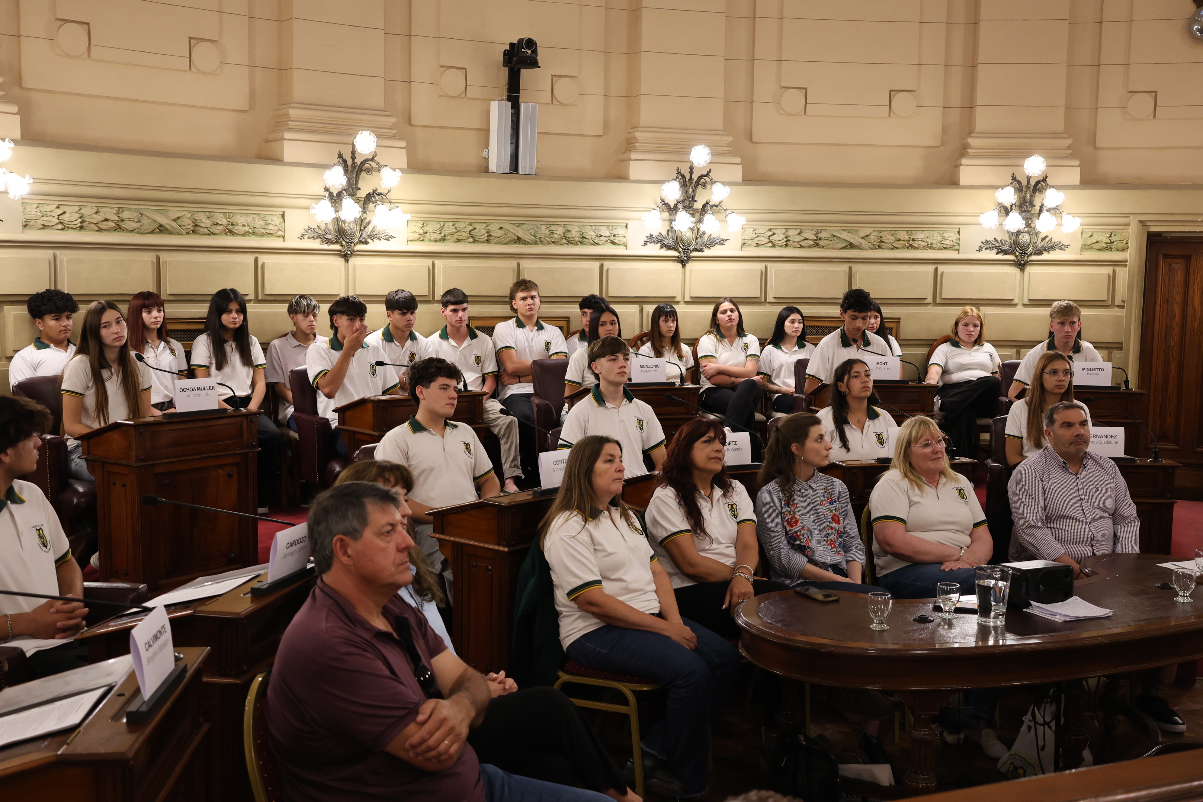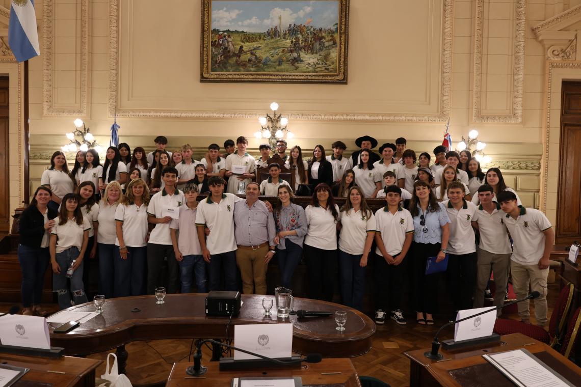 Estudiantes de la escuela EETP y EESO N° 299 "Carlos Sylvestre Begnis" de Sa Pereira, departamento Las Colonias, participaron de una sesión simulada en el marco del programa Ciudadanos en el Senado, impulsada por el senador Rubén Pirola.