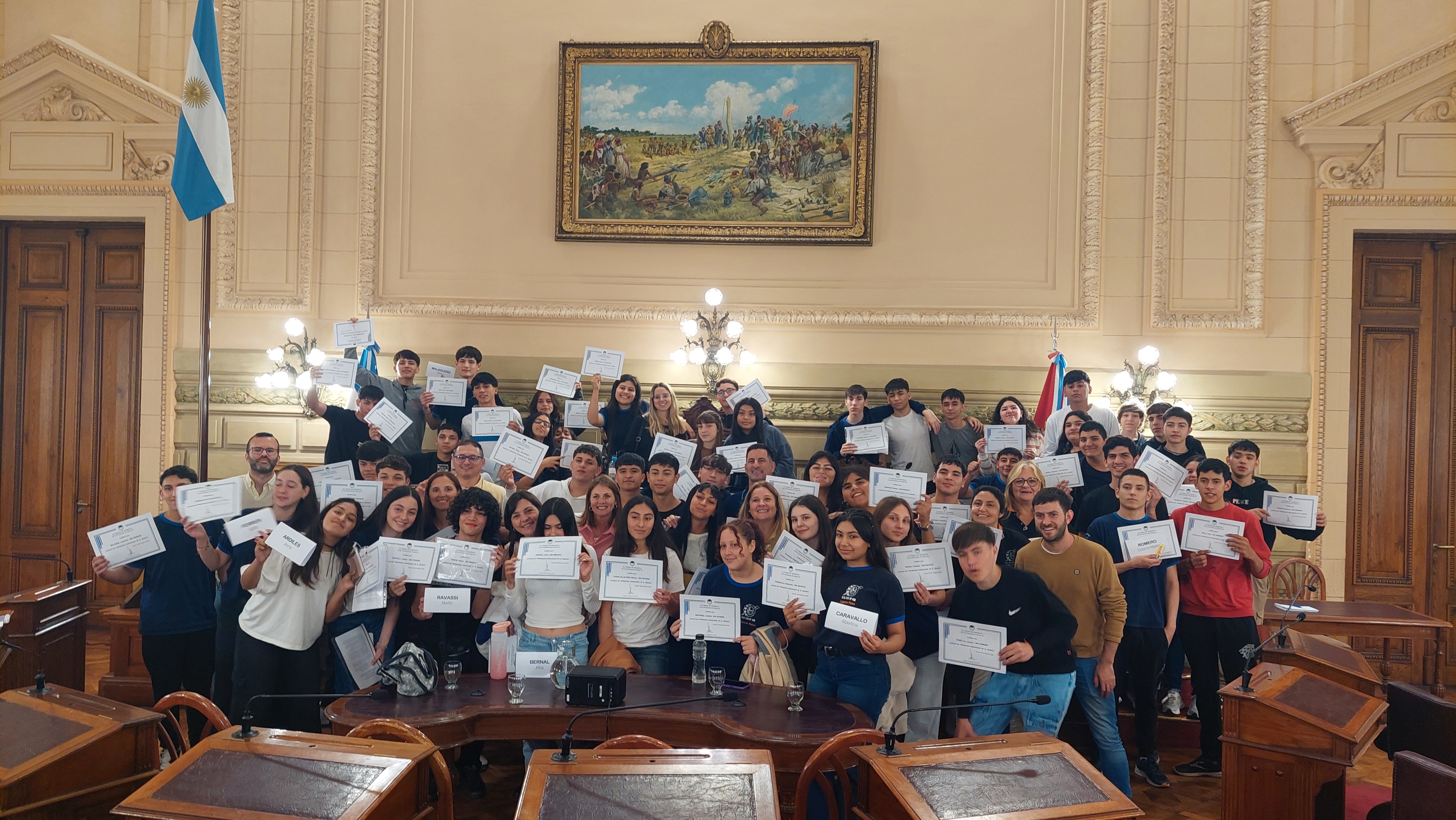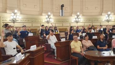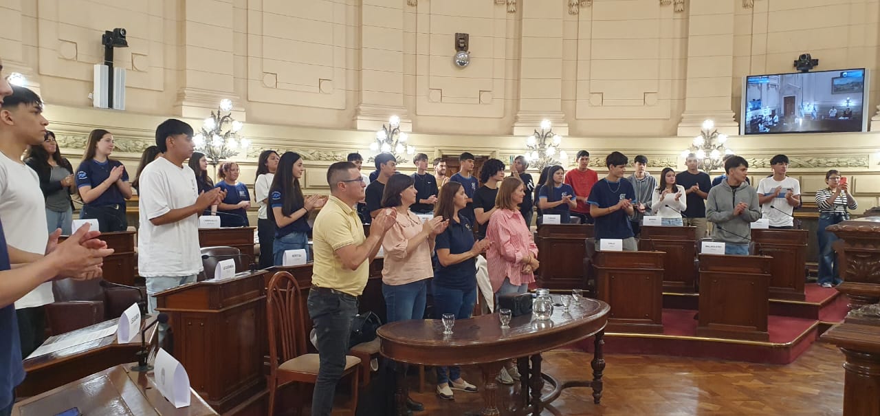 Estudiantes de la EETP N° 458 "Hernadarias de Saavedra" de la localidad de Laguna Paiva, departamento La Capital, participaron de una sesión simulada en el marco del programa Ciudadanos en el Senado, impulsada por el senador Julio "Paco" Garibaldi.