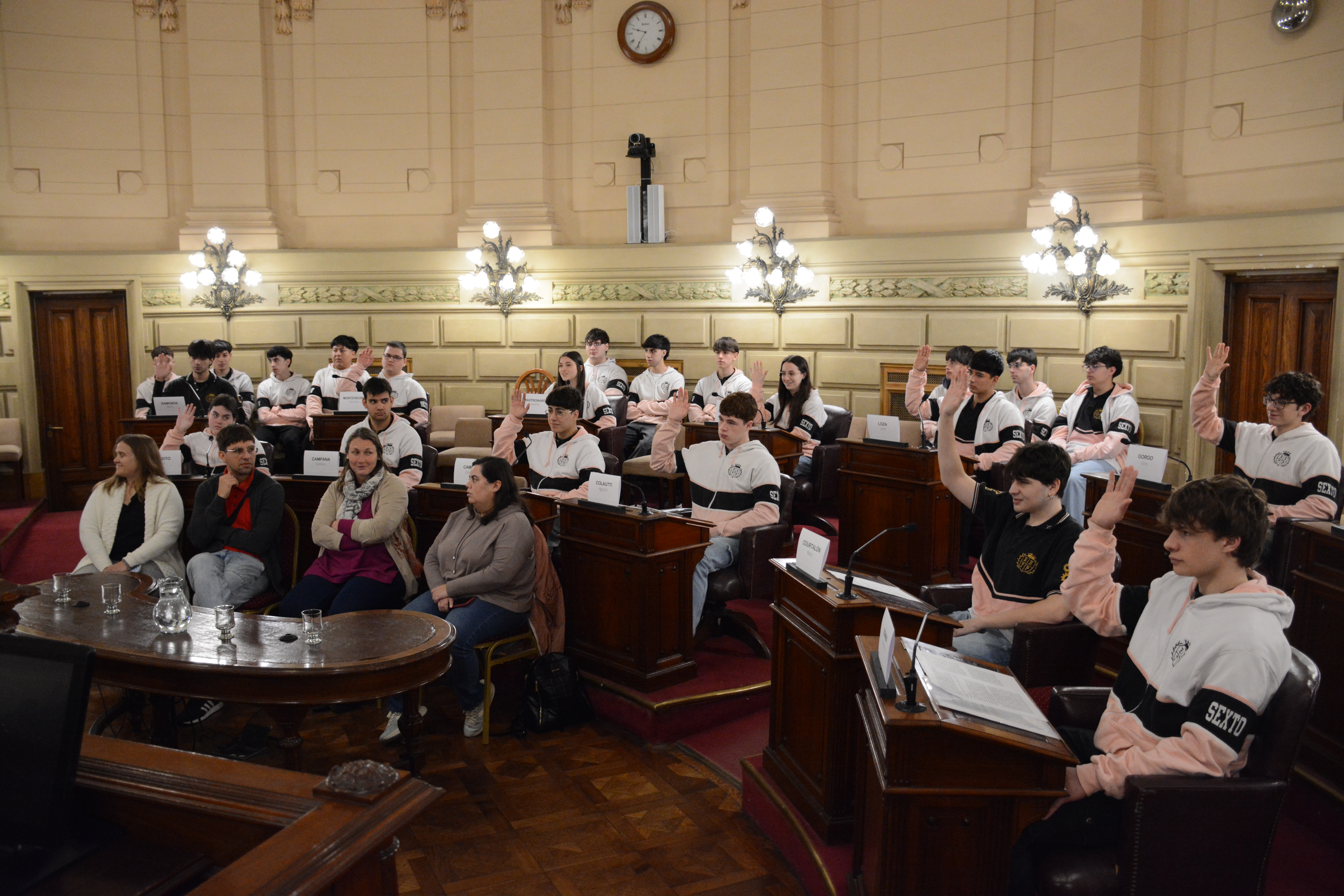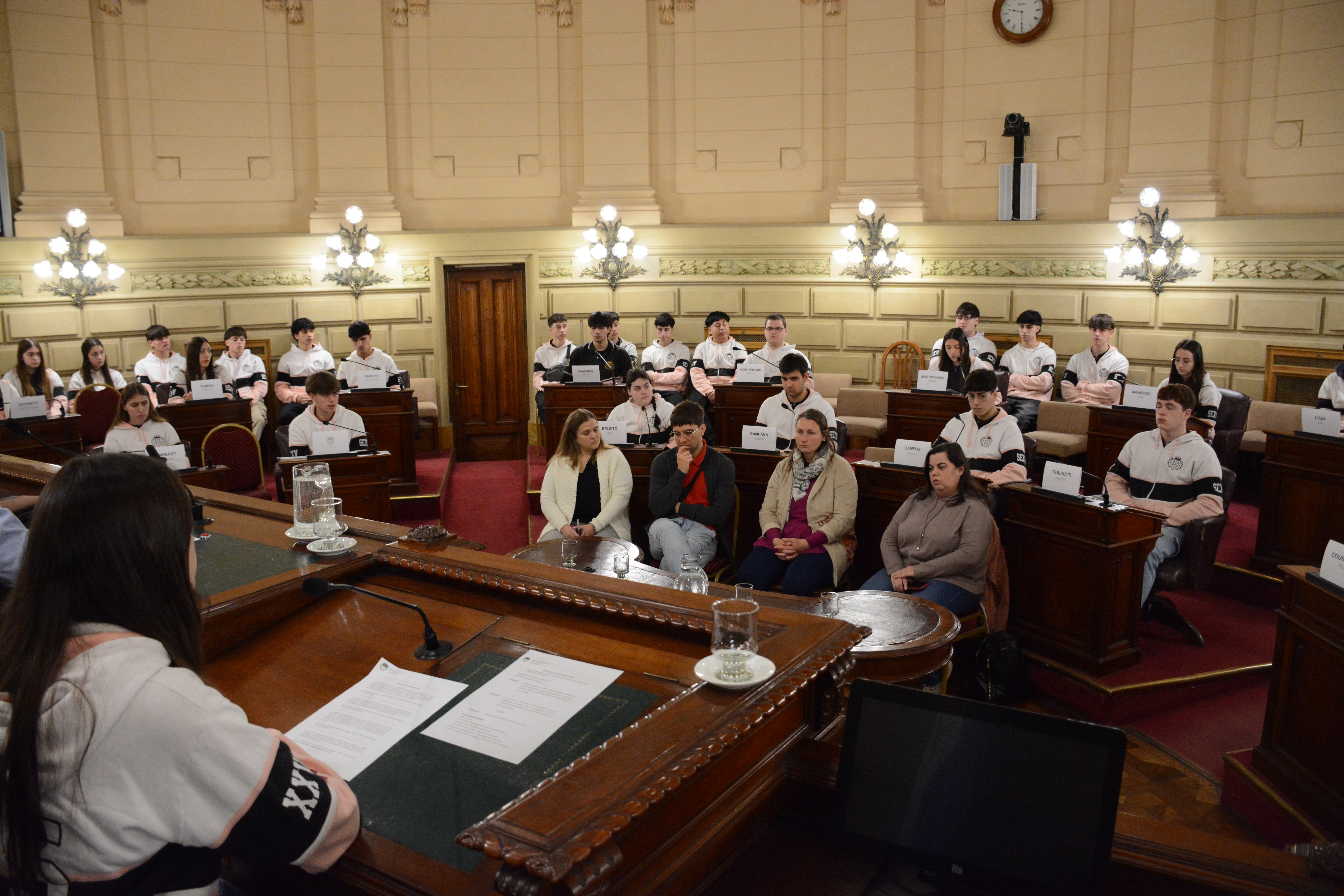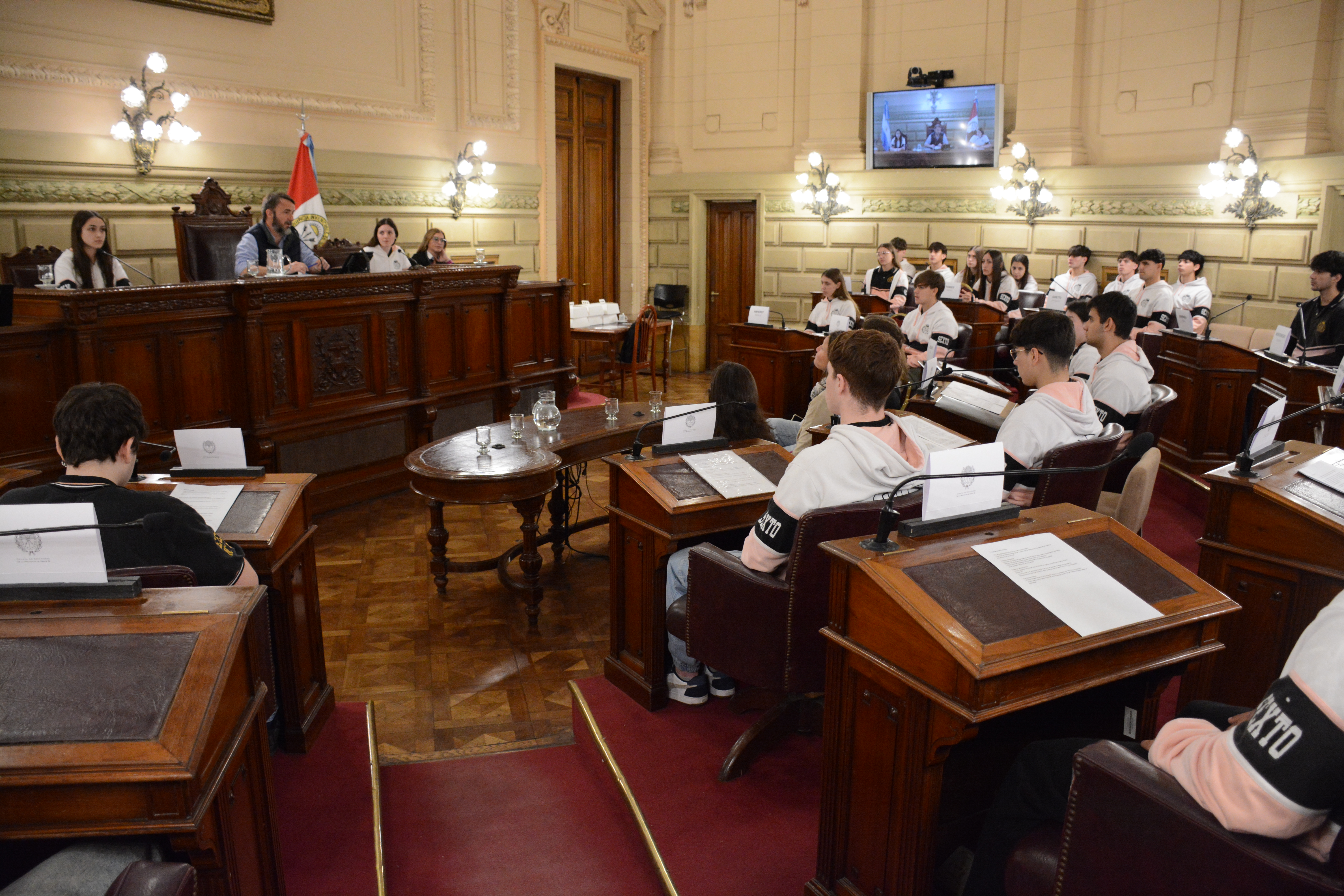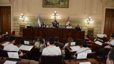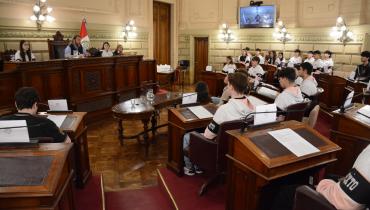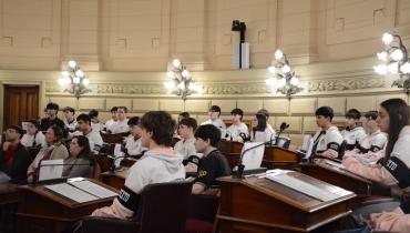 Estudiantes de la Escuela de Educación Técnica Profesional N° 631 "Benjamín Gorostiaga" de San Carlos Centro, departamento Las Colonias, participaron de una Sesión Simulada en el marco del programa Ciudadanos en el Senado, impulsada por el senador Rubén Pirola.