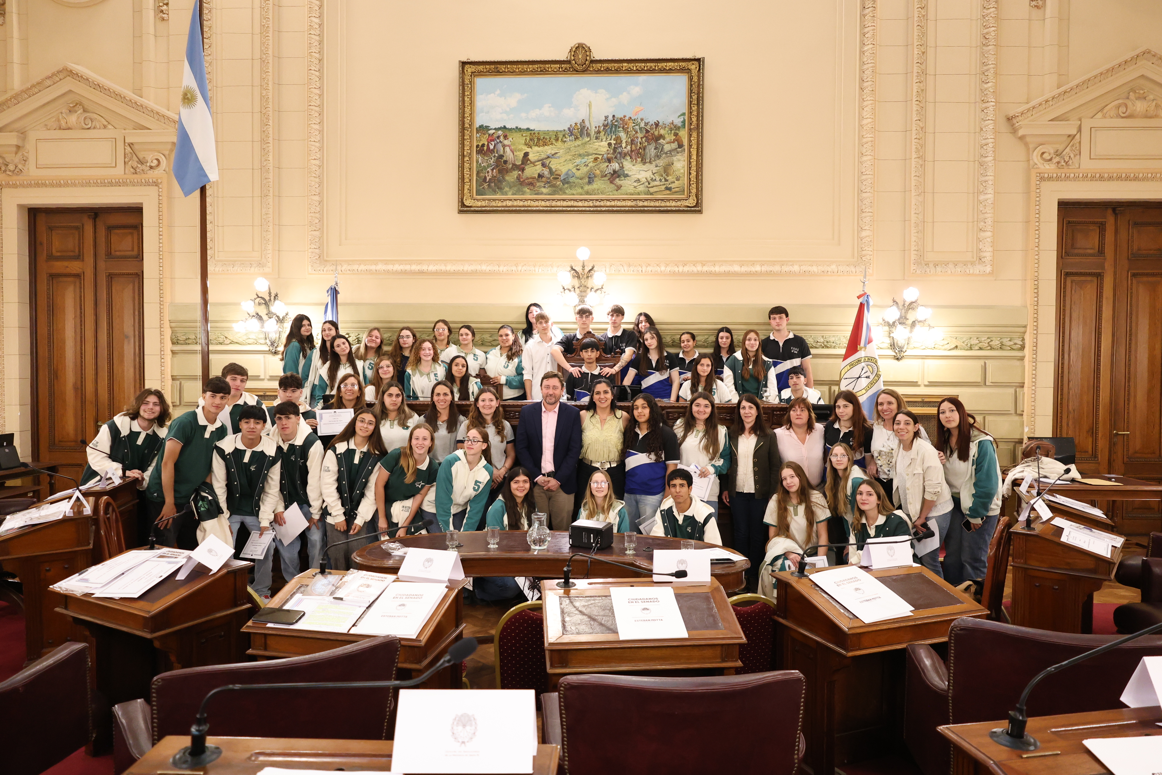 Estudiantes de las escuelas EETP N°301 "Mariano Moreno", de Landeta; EESOPI N° 8090 "San Agustín", de Carlos Pellegrini; y EESO N° 344 "Mariano Moreno" de Col. Belgrano, participaron de una sesión simulada en el marco del programa Ciudadanos en el Senado, presidida por el senador Esteban Motta.