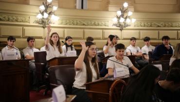 Estudiantes de la Escuela Técnica Secundaria n° 476 "Miguel Castellanos" de San José de la Esquina participaron de una sesión simulada en el marco del programa Ciudadanos en el Senado, presidida por la vicegobernadora Gisela Scaglia. Compartir en Facebook Compartir en Twitter Compartir en Whatsapp