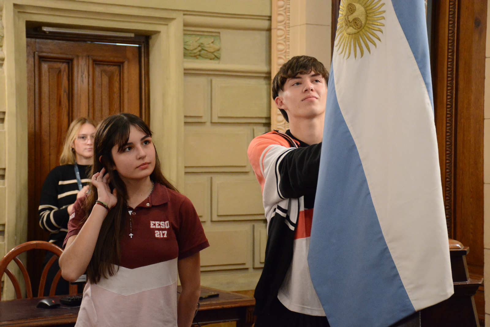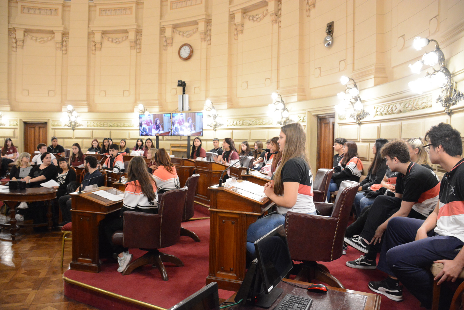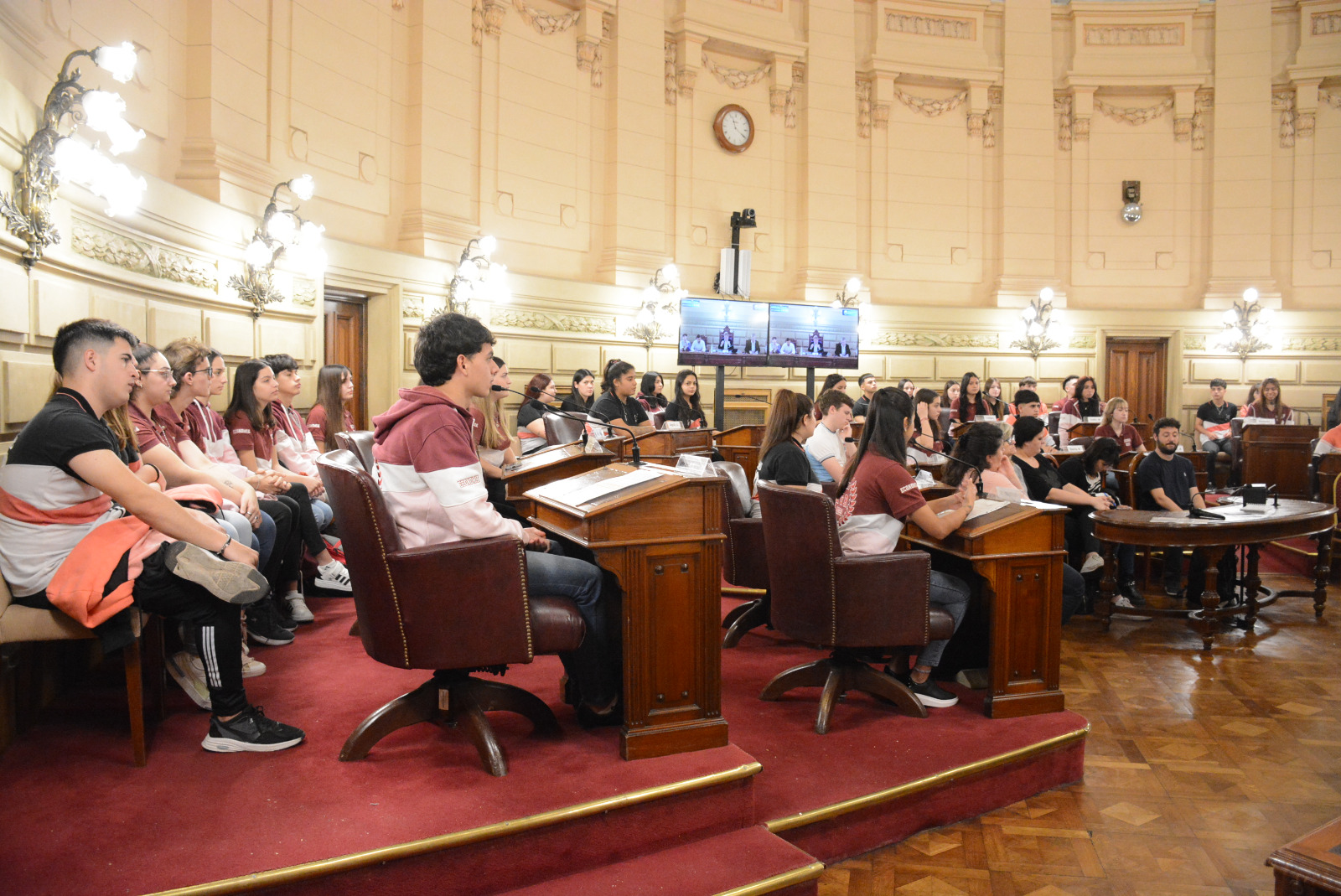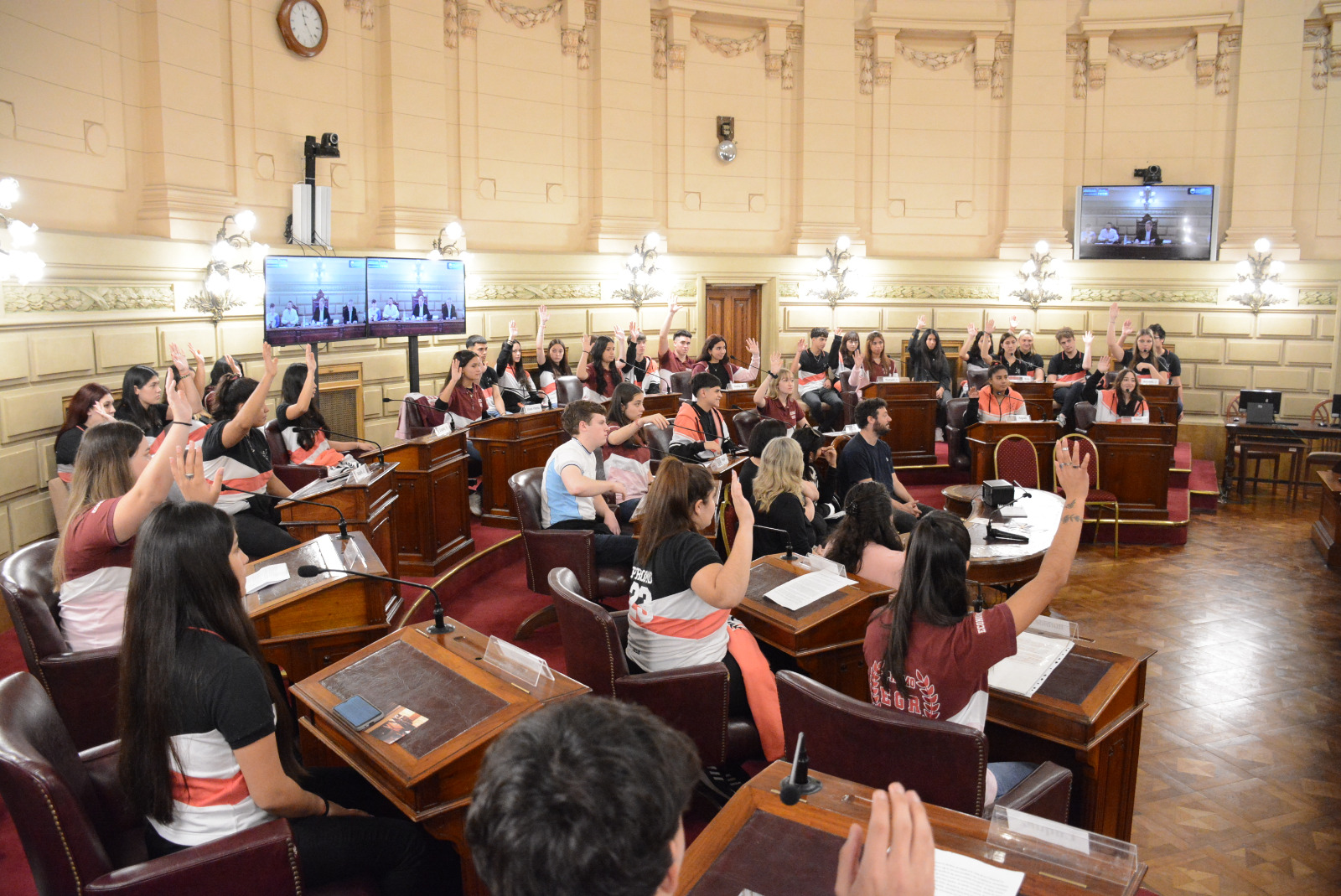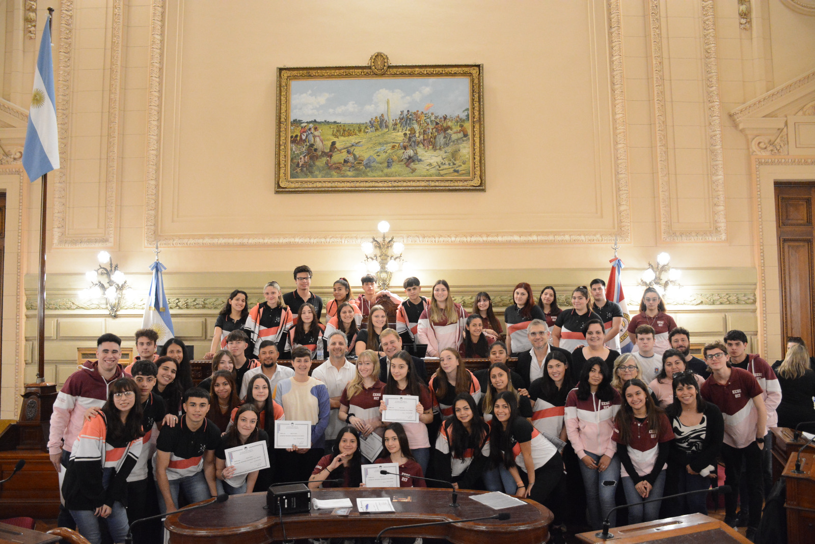 Estudiantes de la Escuela Domingo Faustino Sarmiento N° 217 de Las Rosas realizaron una sesión simulada en el marco del programa Ciudadanos en el Senado, presidida por Guillermo Cornaglia. Compartir en Facebook Compartir en Twitter Compartir en Whatsapp