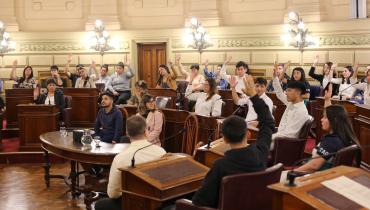 Estudiantes de las escuelas EETP N° 481 "Esteban Echeverría" y EEMPA N° 1157 "Julieta Lanteri" de Santa Fe, departamento La Capital, participaron de una sesión simulada en el marco del programa Ciudadanos en el Senado, impulsada por el senador Julio "Paco" Garibaldi.