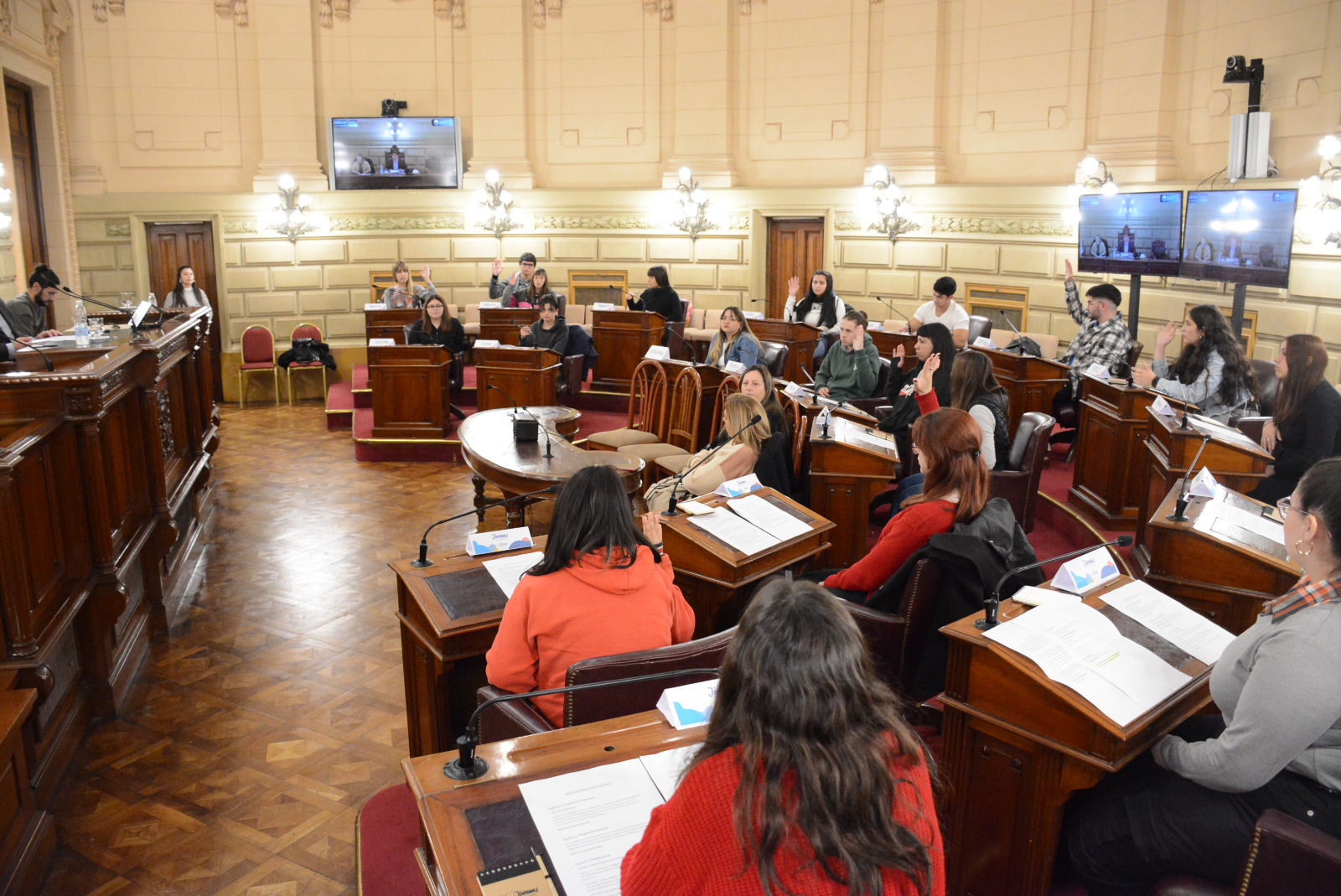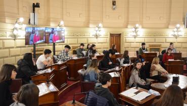Estudiantes de las escuelas N° 237 "José Hernández", de Carcarañá, y Técnica N° 293 "Posta de San Lorenzo", de Capitán Bermúdez, participaron de una sesión simulada en el marco del programa Ciudadanos en el Senado, convocada por el senador Armando Traferri.