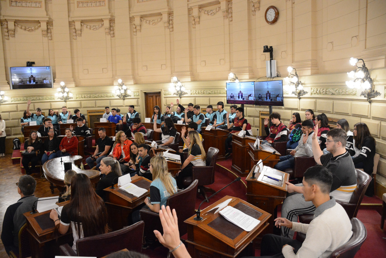 Sesión simulada a cargo de estudiantes de: E.E.S.O N°521 "Nildo Feliciano Bertello" (Lopez); E.E.S.O.P.I N°2044 "Santa Ana" (Gessler); E.E.T N°670 "General Antonio González Balcarce" (Gálvez) y E.E.S.O N°496 "Héroes del 2 de abril" (Caima). Compartir en Facebook Compartir en Twitter Compartir en Whatsapp