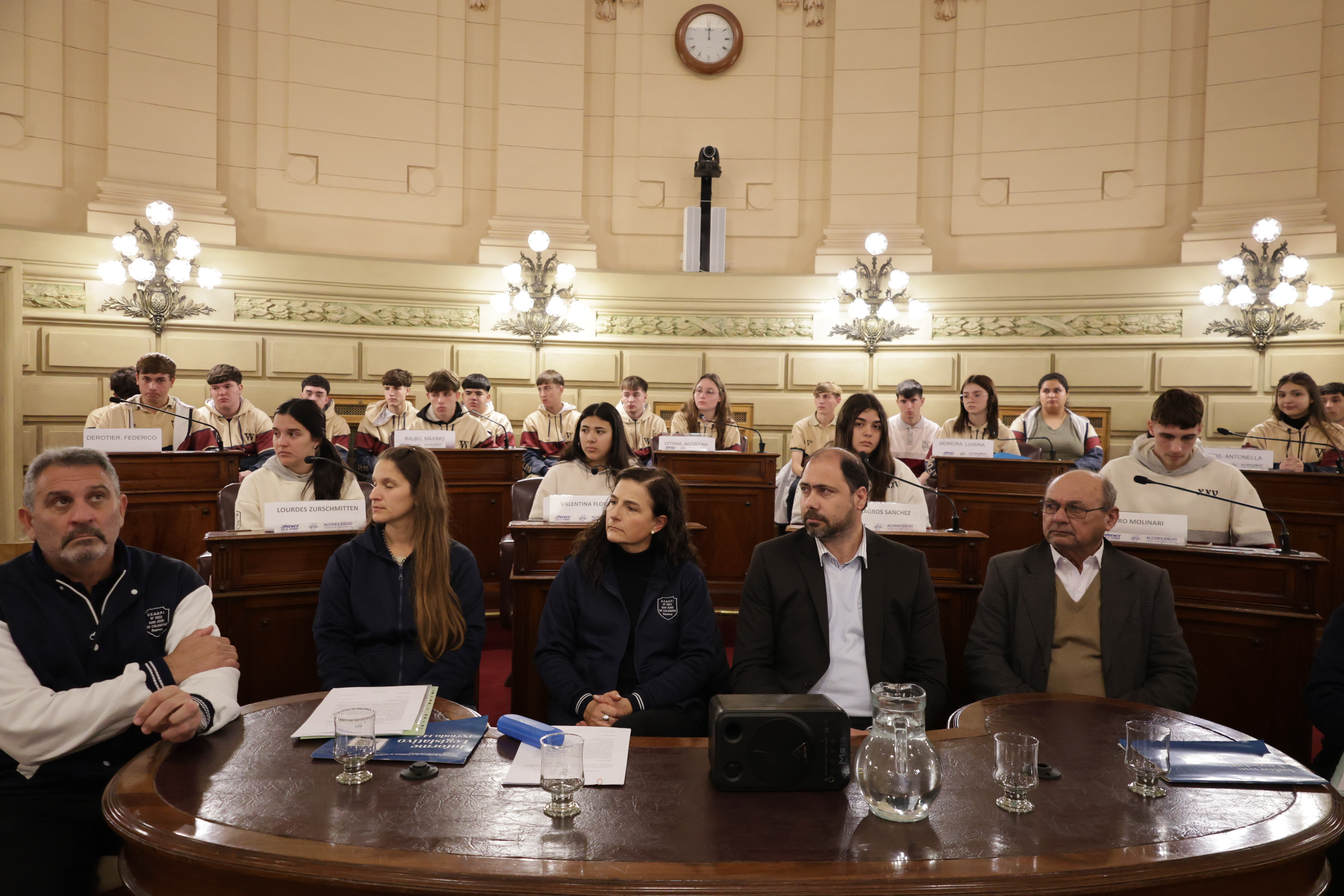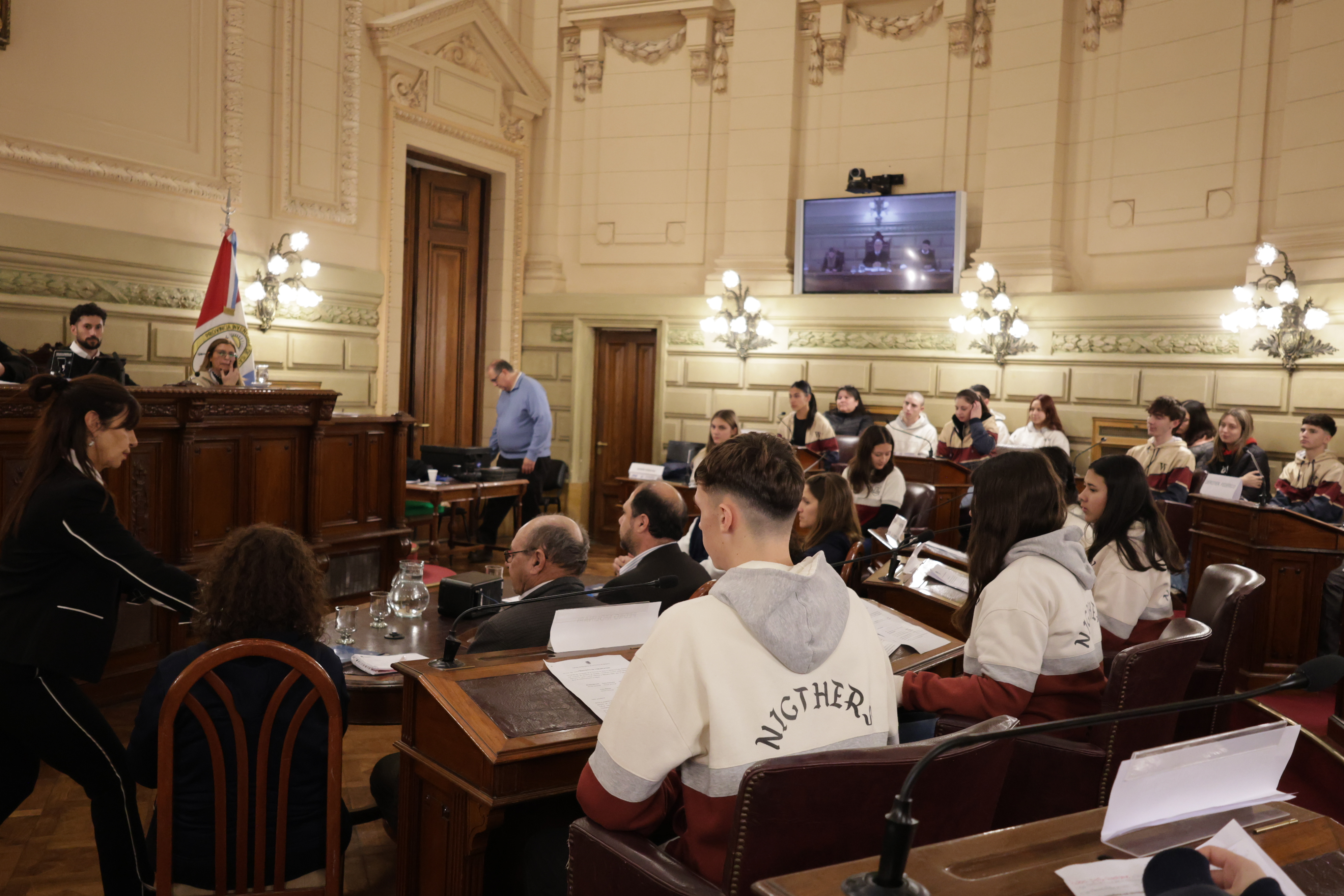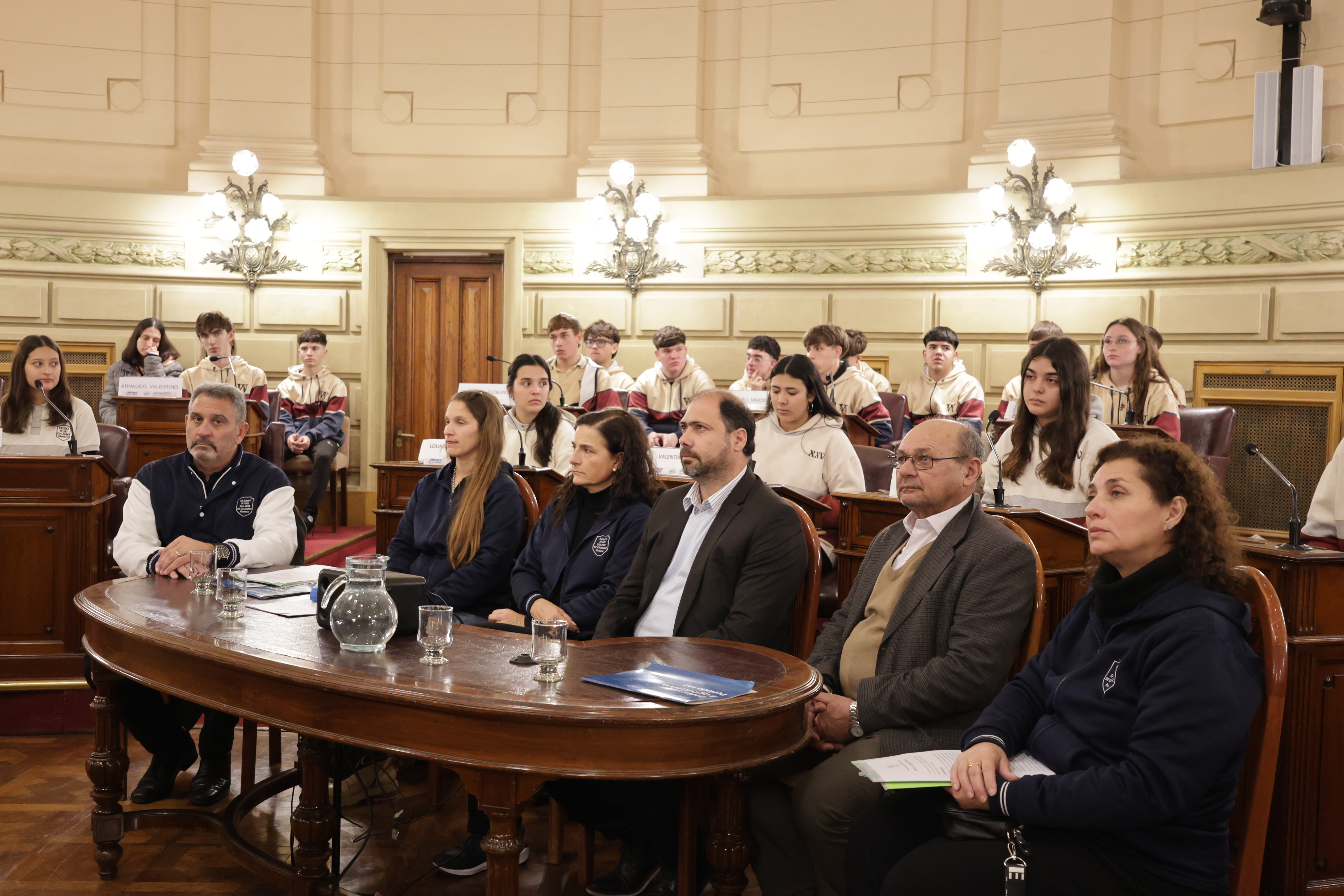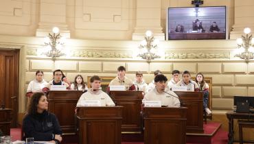 Estudiantes de la EESOPI N° 247 "Mariano Moreno" de Colonia Aldao y de la EESOPI N° 3023 "San José de Calasanz" de Ramona, ambas localidades del departamento Castellanos, participaron de una sesión simulada. La actividad, en el marco del programa Ciudadanos en el Senado, fue presidida por el senador Alcides Calvo.