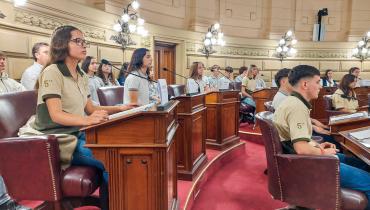 Estudiantes de las Escuelas EEMPI N° 8153 "Santa Marta", de Pilar, y EESOPI N° 8128 "San José", de Felicia, ambas del departamento Las Colonias, participaron de una Sesión Simulada en el marco del programa Ciudadanos en el Senado, impulsada por el senador Rubén Pirola.