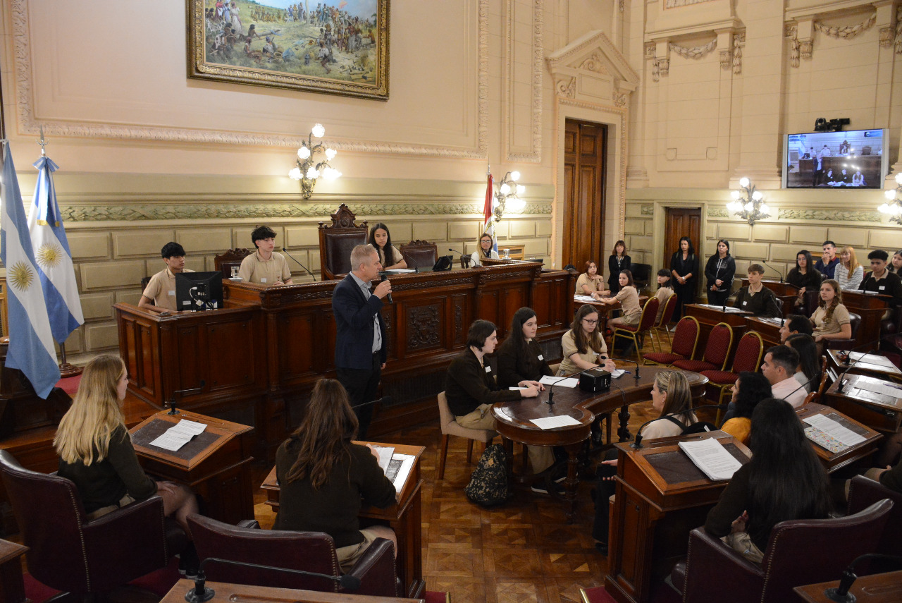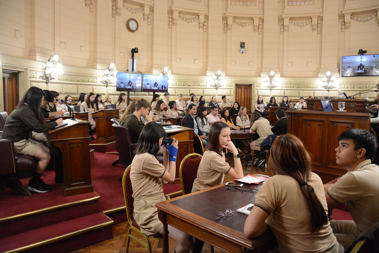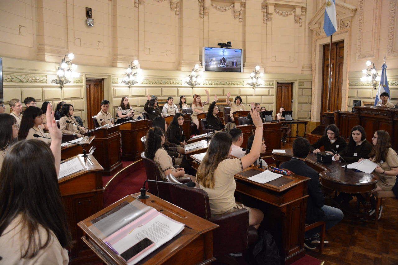 Estudiantes de la EESOPI N° 8168 "Nuestra Señora del Sagrado Corazón", de Villa Gobernador Gálvez, participan de una sesión simulada convocada por el senador Miguel Rabbia. Compartir en Facebook Compartir en Twitter Compartir en Whatsapp