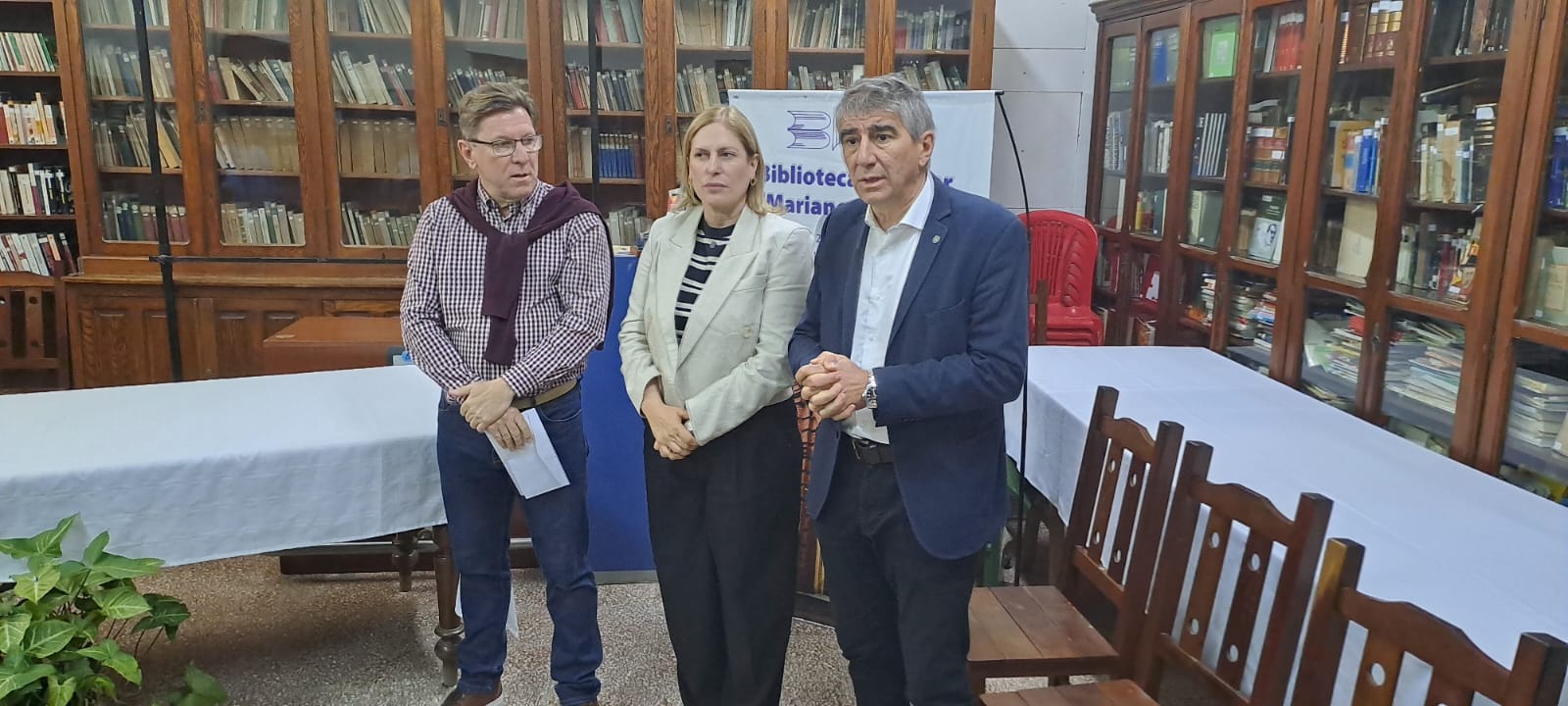 Scaglia, Bastía y Borla en las instalaciones de la Biblioteca de San Justo.