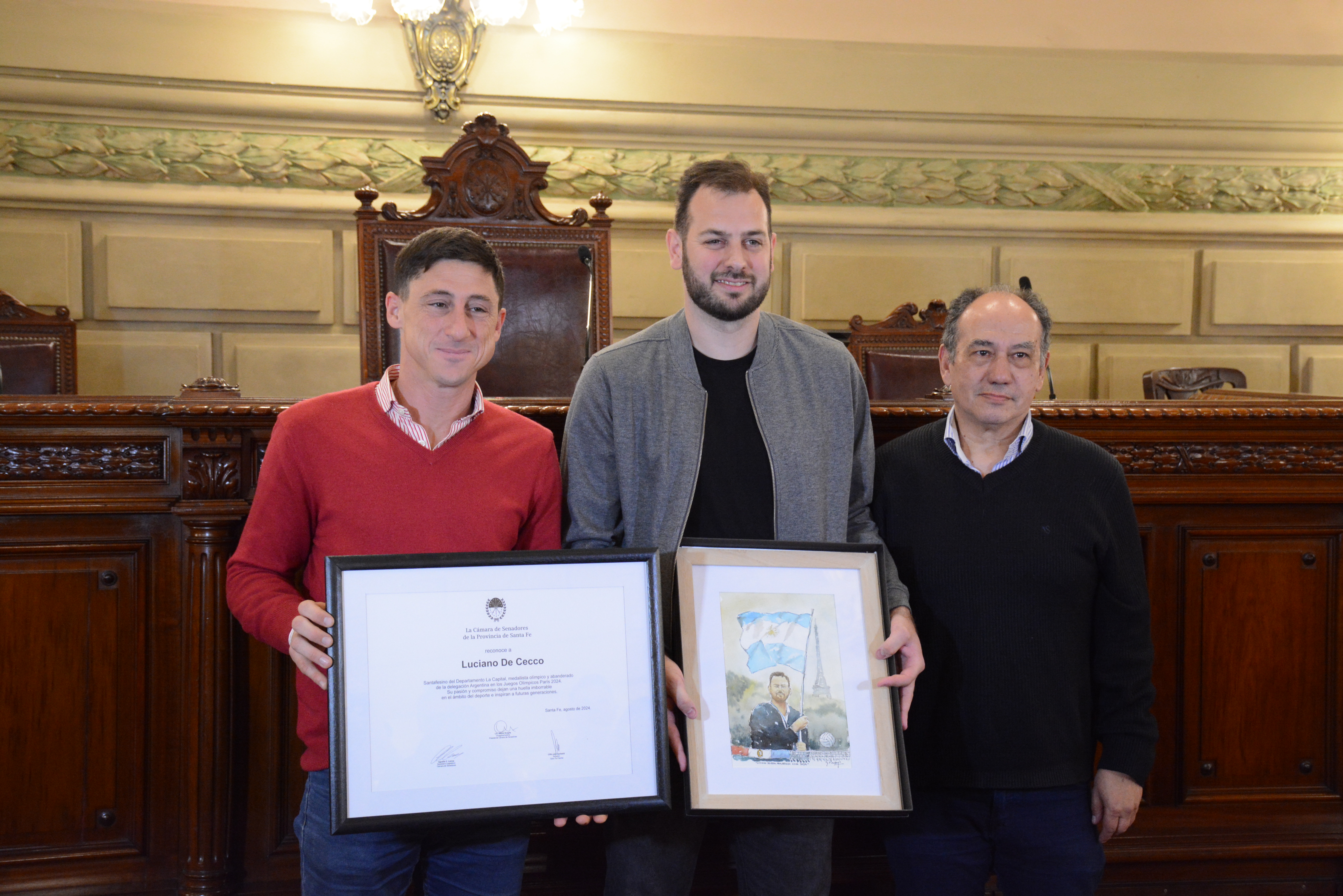 La Cámara de Senadores de la Provincia reconoció al voleibolista santafesino Luciano De Cecco, integrante de la selección nacional que participó de los Juegos Olímpicos París 2024. La ceremonia tuvo lugar en el recinto de sesiones y se realizó por una iniciativa del senador del departamento La Capital, Julio “Paco” Garibaldi, aprobada de manera unánime por todo el Cuerpo.