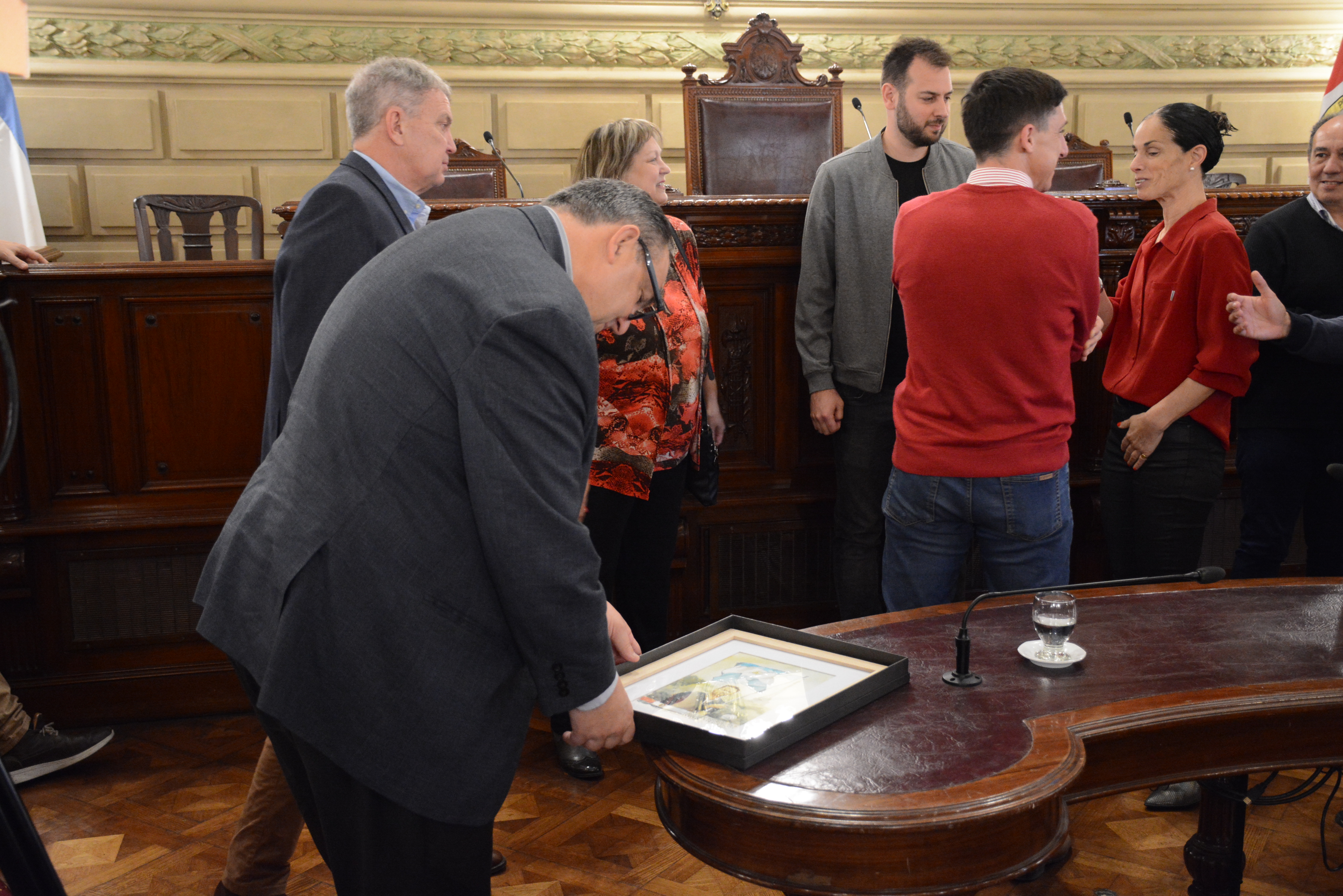 En el cierre del homenaje, De Cecco recibió un diploma y presentes institucionales, además de firmar el Libro de Honor del Senado para dejar testimonio de su visita a la Cámara Alta.
