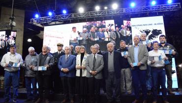 Seguidamente, el presidente de la Cámara baja, Pablo Farías, pronunció su discurso, y entre otros conceptos señaló que “hoy vuelven a ser protagonistas quienes fueron nuestros máximos representantes a la hora de la defensa del territorio de la Nación”. Y acto seguido señaló: “Quiero decirles muchas gracias por el sacrificio que hicieron al ir a una guerra en la que no tenían nada a favor. Gracias por ofrendar su vida defendiéndonos a todos los argentinos y las argentinas. Gracias por recordarnos todos los días que nuestro territorio sigue invadido por la dominación colonial”.