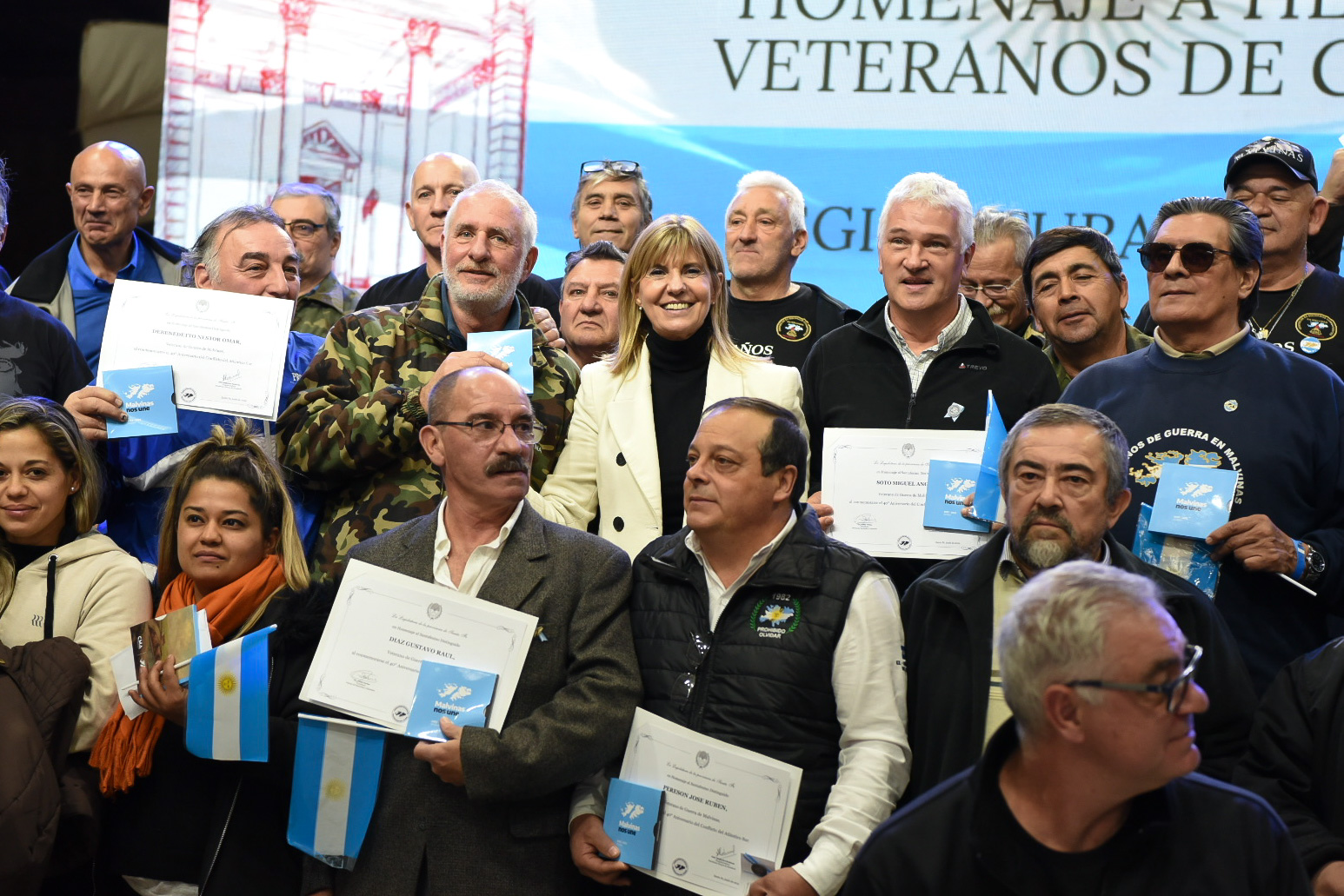 Sobre el cierre del homenaje, llegó el momento más conmovedor: los familiares de Héroes Nacionales de Guerra de la Provincia recibieron un diploma conmemorativo que precedió a la entrega del reconocimiento a los veteranos de la Guerra de Malvinas y los familiares de los veteranos fallecidos. La memoria de una guerra que forma parte de la historia nacional, mezclada con la emoción de los recuerdos personales y la eterna gratitud del pueblo, se sintió en los cruces de miradas, los abrazos y gestos amables.