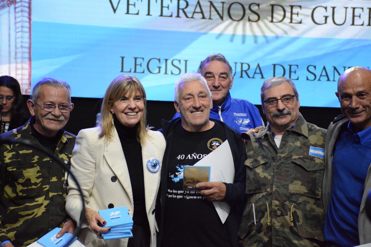 Luego de las palabras de la vicegobernadora se realizó la entrega de un presente conmemorativo a los presidentes de los Centros de Ex Soldados Combatientes y Veteranos de Guerra de Malvinas, de la que también formaron parte los presidentes de los distintos Centros de la provincia de Santa Fe. Un cálido agradecimiento para quienes asumieron la responsabilidad de llevar adelante la gestión de las agrupaciones y reafirmar cada día el compromiso asumido por los Veteranos.
