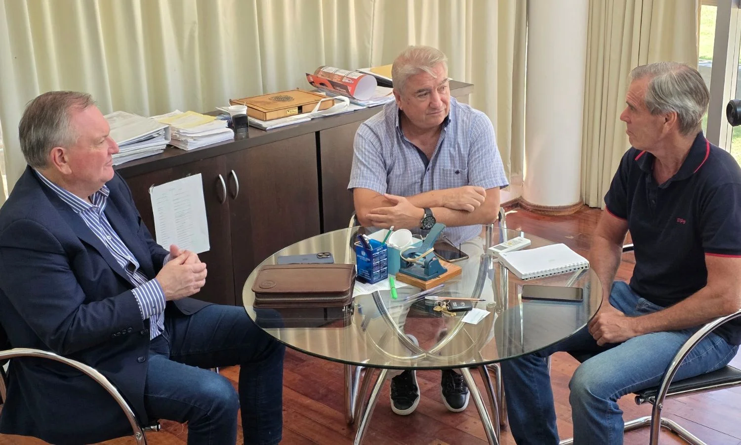 Este lunes, en la Sede de la Dirección Provincial de Vialidad, de la ciudad de Santa Fe, el senador provincial Felipe Michlig, mantuvo una reunión de trabajo con el Administrador General de la DPV, Ing. Pablo Seghezzo, y el Subadministrador General, Sergio Cardozo, en la que se realizó una evaluación integral de las obras viales en ejecución y se avanzó en la planificación de nuevos trabajos para el año 2026 en el departamento San Cristóbal.