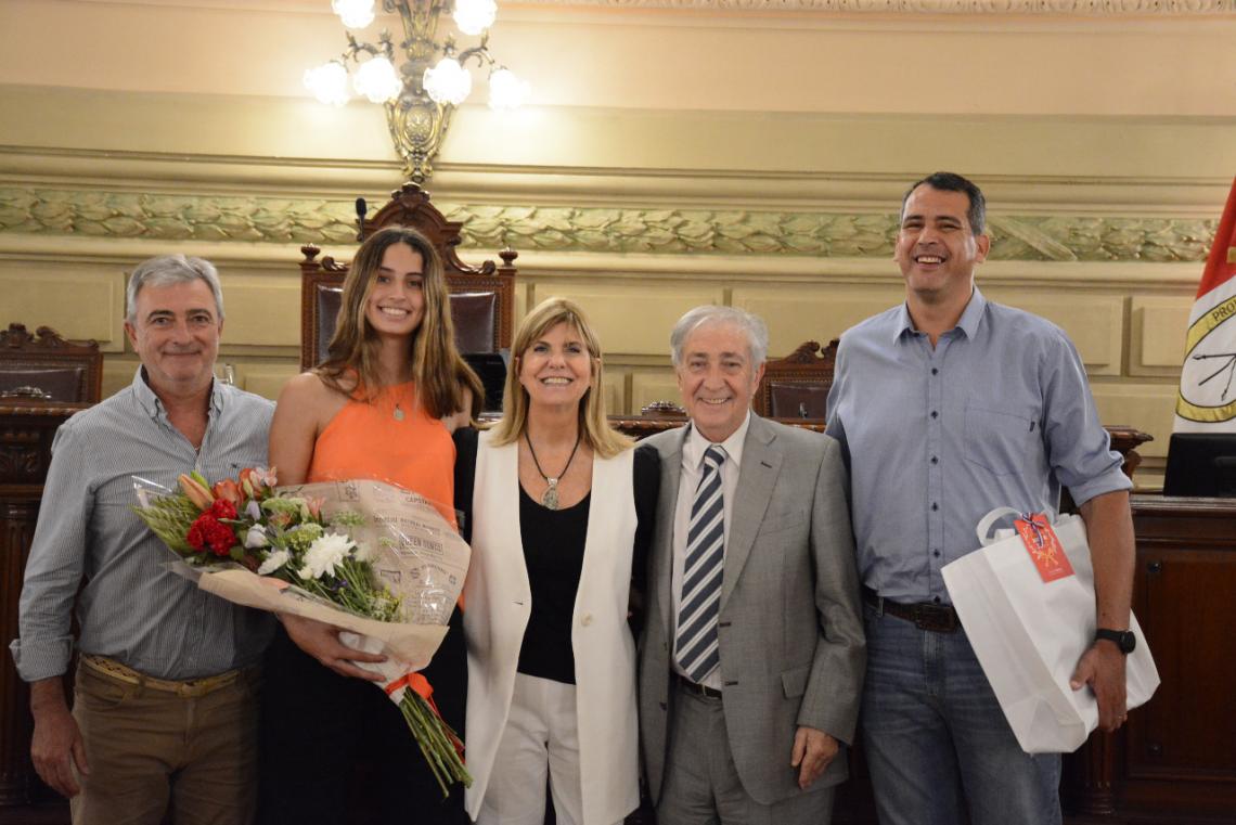La deportista, que estuvo acompañada por su padre Javier Morell, y el presidente del Club San Lorenzo de Tostado, Alejandro Benavidez, recibió una distinción y distintos presentes de parte de la Cámara Alta. Durante la ceremonia, el legislador que propició el reconocimiento destacó "hoy milagros con 15 años tiene una trayectoria más que importante por los hechos que hablan por sí solos".