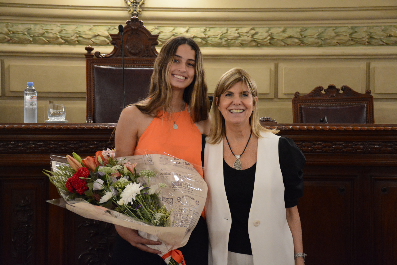 Por su parte, la vicegobernadora y presidenta del Senado, Alejandra Rodenas, sostuvo que "esta Cámara reconoce permanentemente a los deportistas y profesionales de todos los departamentos de la Provincia, hoy te toca a vos Milagros, te deseo lo mejor para vos y ojalá que la salud, la suerte, tu familia y el club te acompañen siempre por el resto de tu carrera".