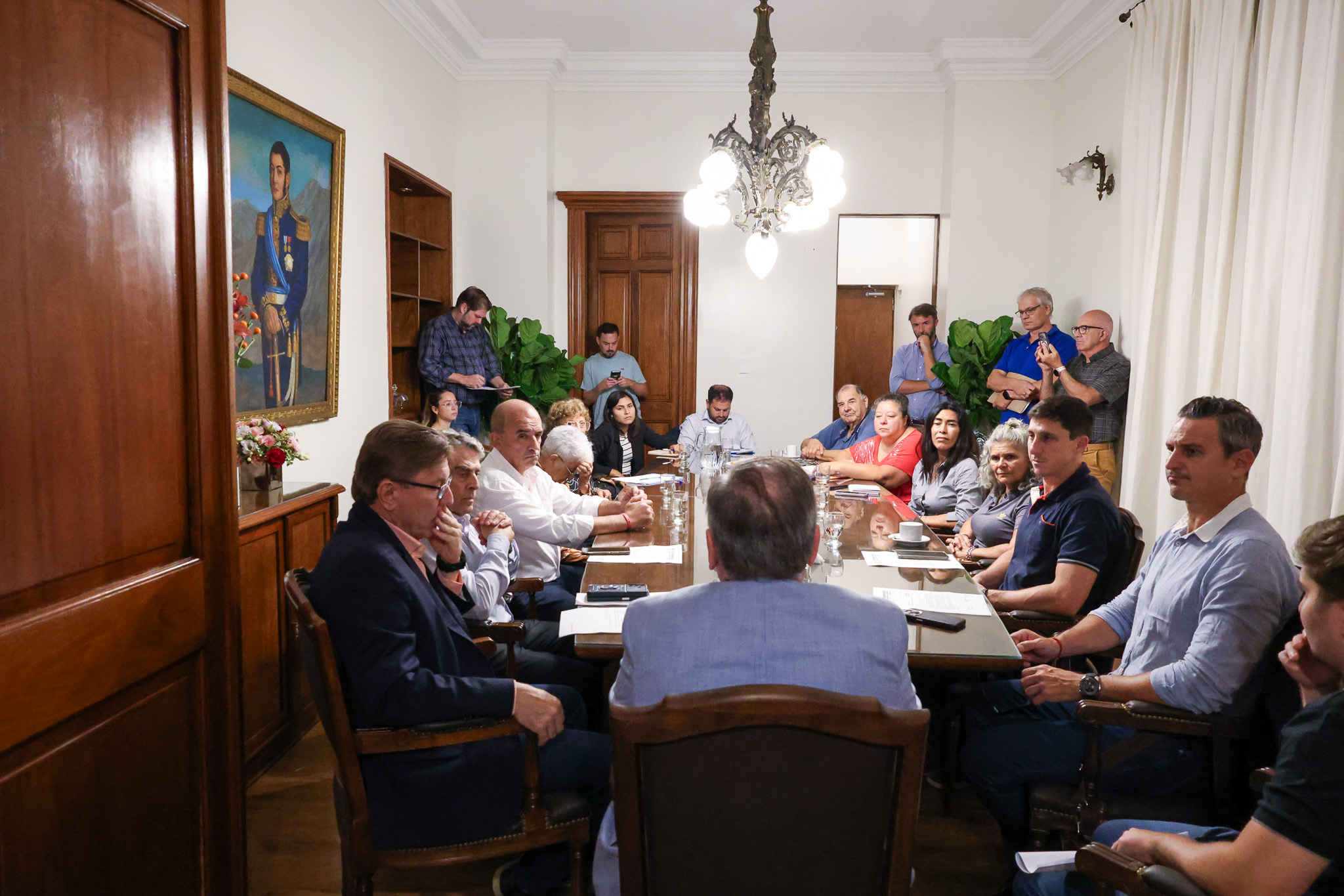 En la Cámara de Senadores se realizó una reunión de trabajo para analizar el tratamiento del Fondo de Asistencia Educativa (FAE) en el marco del debate de la nueva Ley Orgánica de Municipios. El encuentro fue encabezado por el Presidente Provisional de la Cámara Alta, Felipe Michlig, acompañado por los senadores Rodrigo Borla, Julio Garibaldi, Ciro Seisas, Armando Traferri y Esteban Motta, junto al secretario Legislativo Agustín Lemos y el secretario del bloque Unidos Jeremías Bastía.