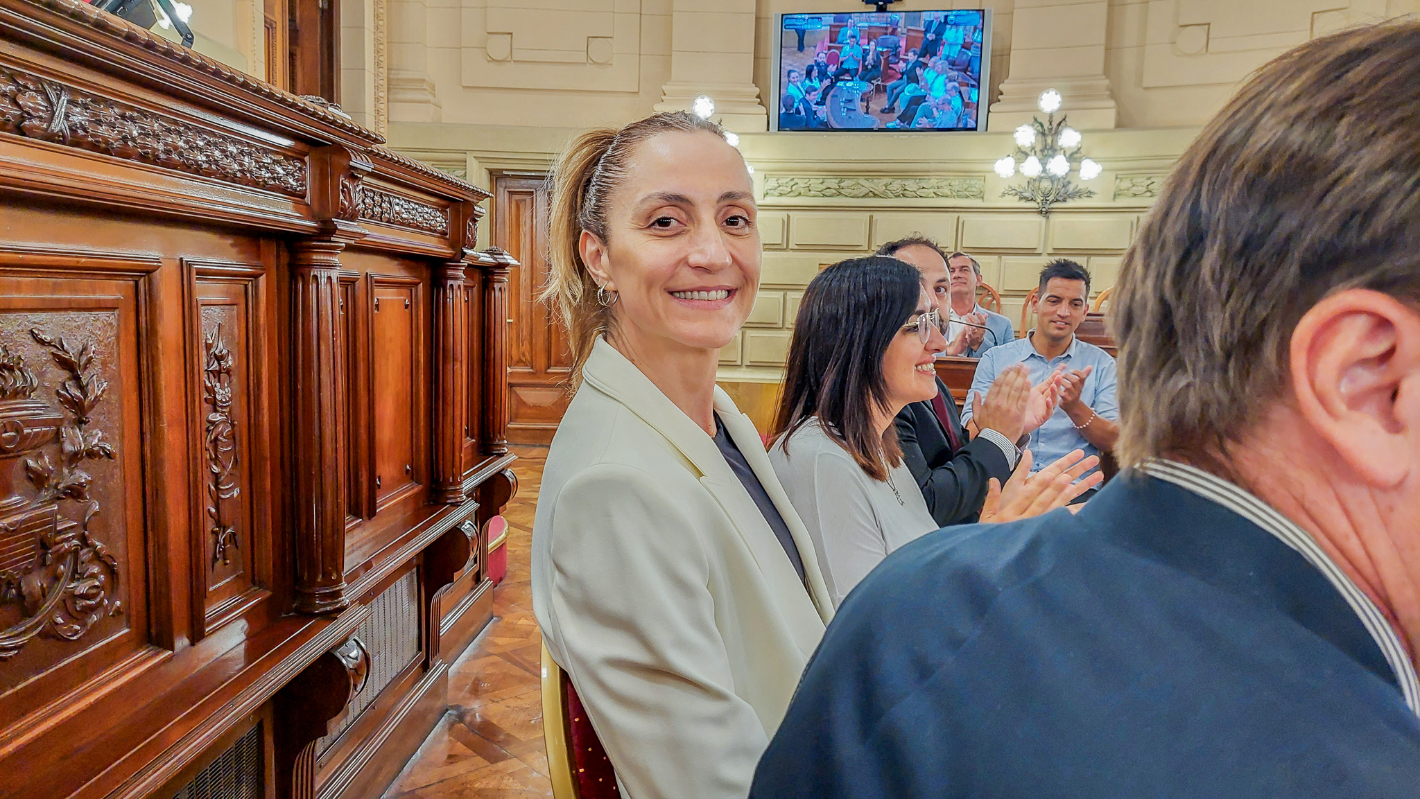 La voleibolista, oriunda de El Trébol y considerada una de las mejores deportistas en esta disciplina, fue reconocida en el recinto de la Cámara de Senadores por su gran carrera y trayectoria en el deporte, su esfuerzo y dedicación.