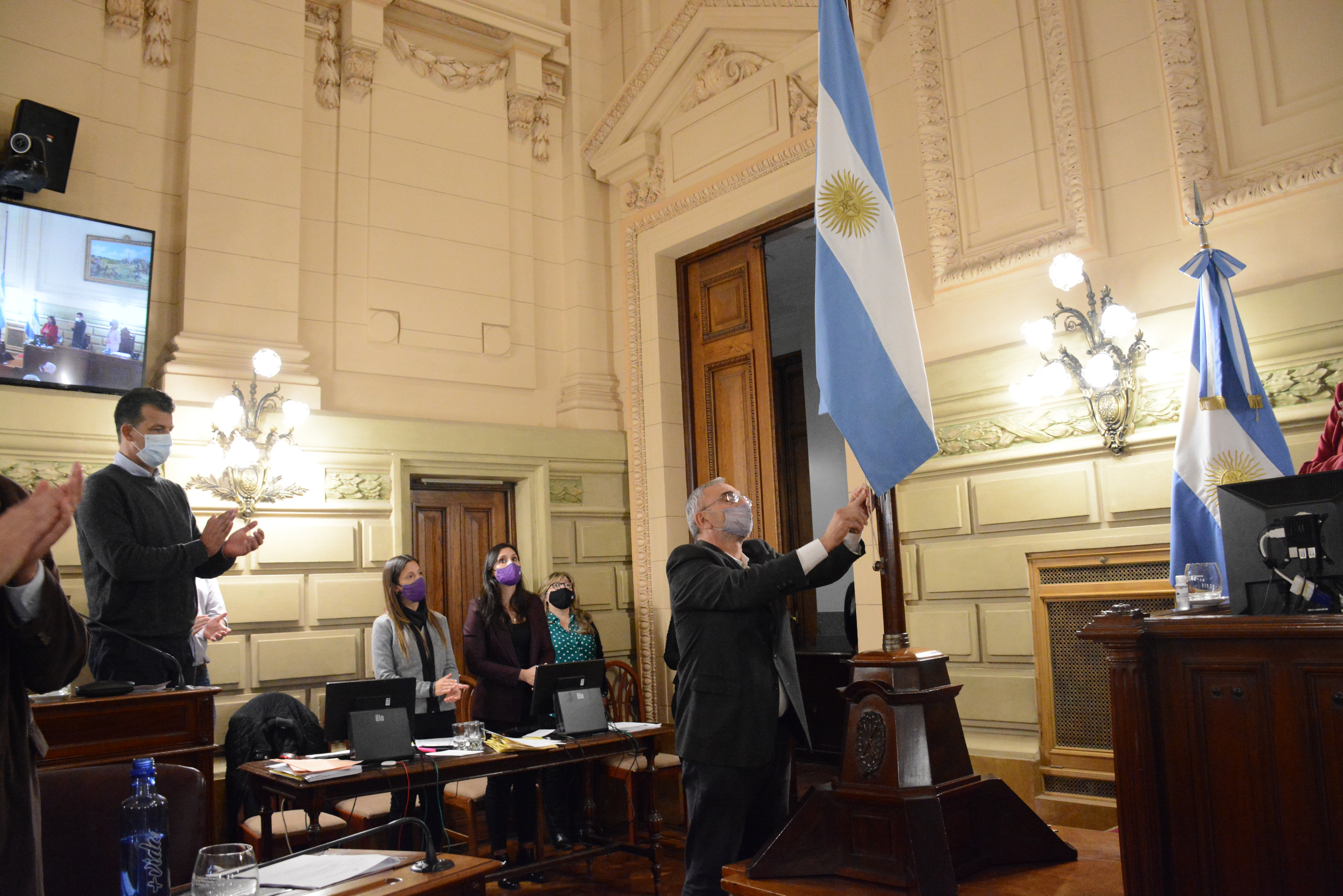 Al comienzo del encuentro, el senador Alcides Calvo (Castellanos) izó la bandera a media asta por el reciente fallecimiento de Miguel Lifschitz. Posteriormente la presidenta Alejandra Rodenas pidió un minuto de silencio y manifestó que “la política de la Provincia de Santa Fe y del país perdió a un hombre que fue prolífico en su historia y que tanto le ha dado a la provincia de Santa Fe. Quiero enviar las condolencias a su familia, a sus amigos y a quienes integraban su espacio político. Por él, en su memoria,vamos a hacer este minuto de silencio”.