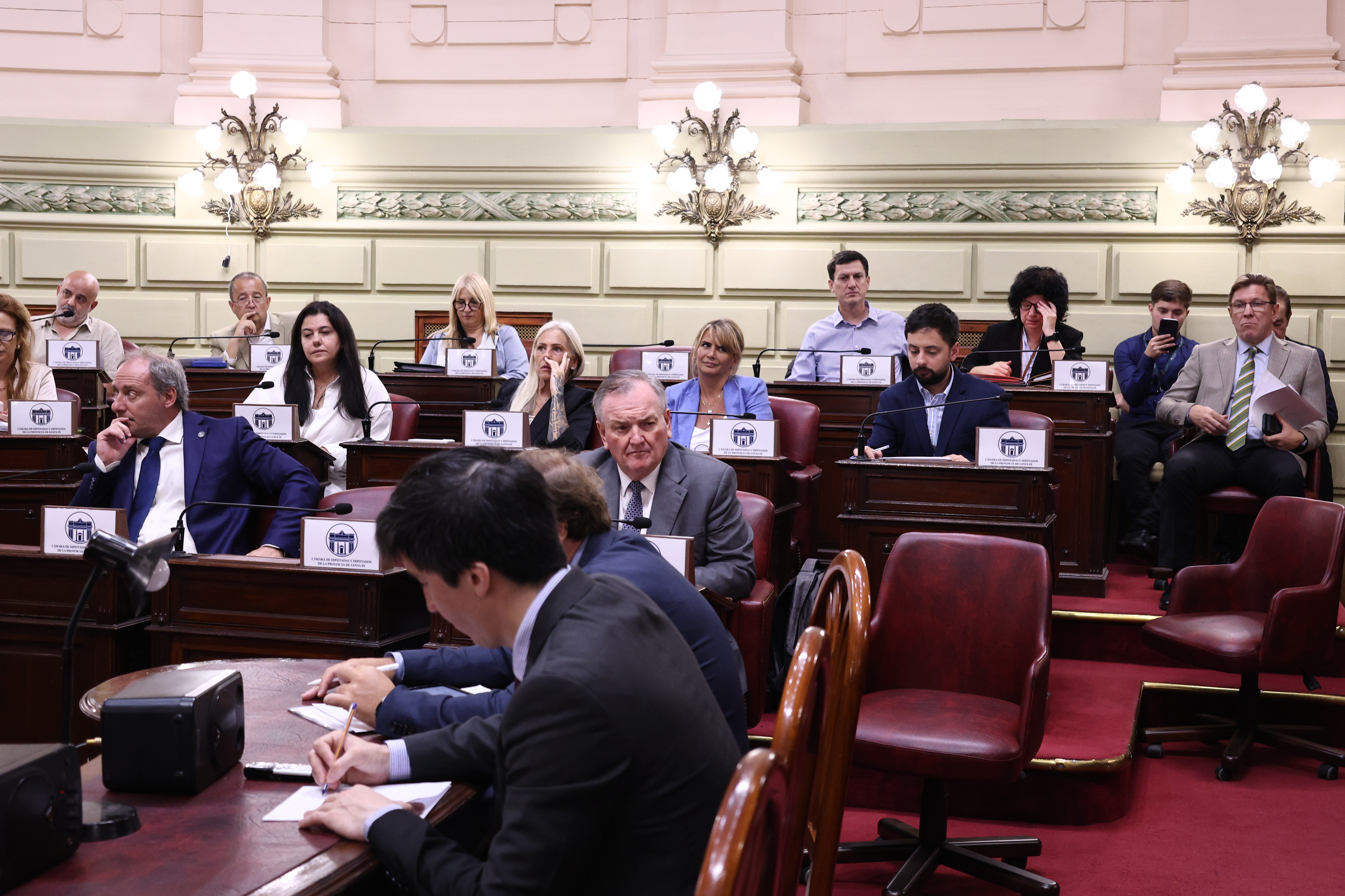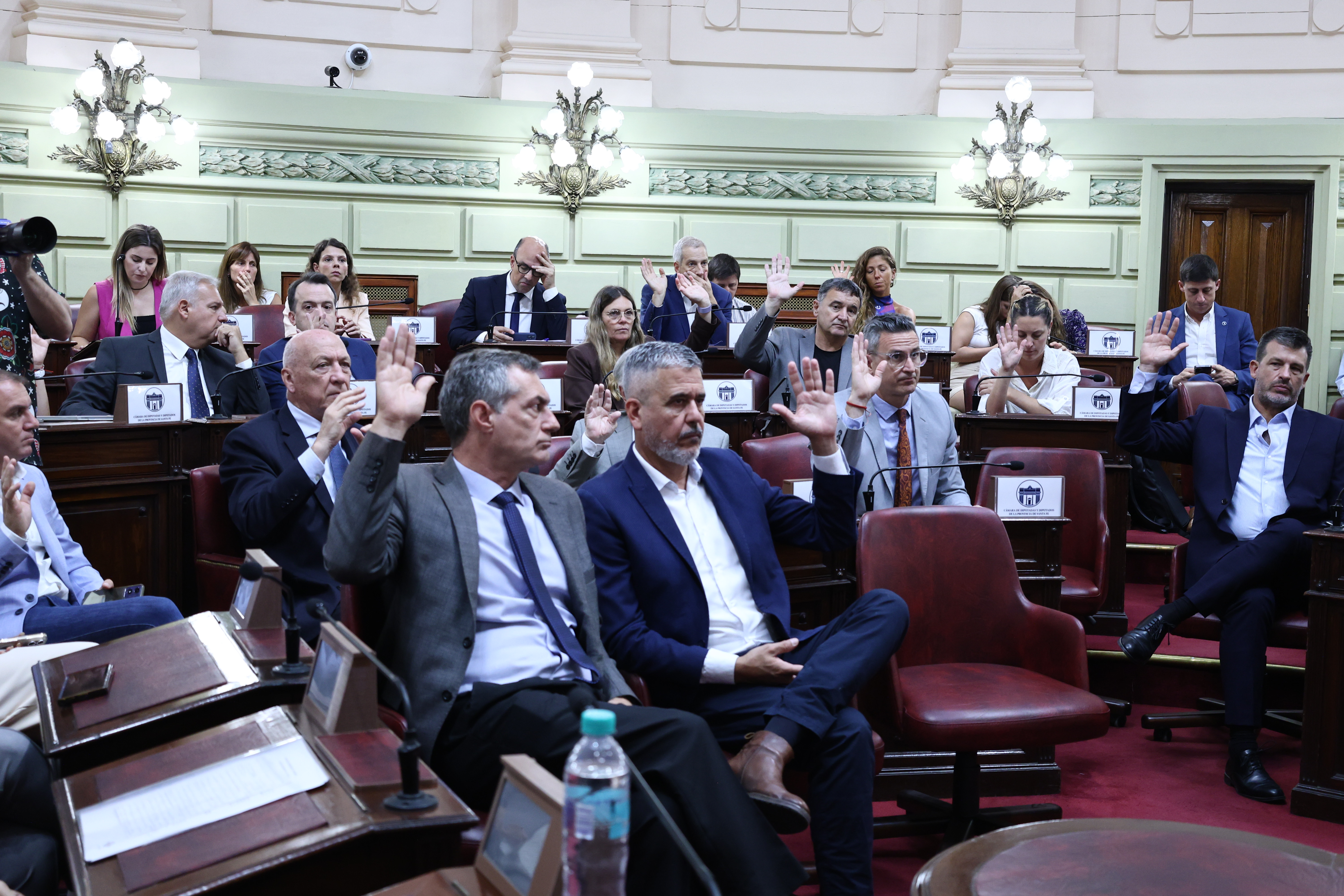 En el recinto de la Cámara de Diputados y Diputadas de Santa Fe se realizó una nueva Sesión Conjunta presidida por la vicegobernadora de la Provincia y presidenta del Senado, Gisela Scaglia. La misma fue convocada para expedirse sobre los dictámenes de la Comisión de Acuerdos de la Asamblea Legislativa en el marco de los procedimientos para la gestión de denuncias y trámites de remoción iniciados al Fiscal Adjunto del Ministerio Público de la Acusación de la 4ta Circunscripción Judicial, Dr. Leandro Darío Benegas, y al Fiscal Adjunto del Ministerio Público de la Acusación de la 1ra Circunscripción Judicial, Dr. Diego Gustavo Rodríguez y Barros.