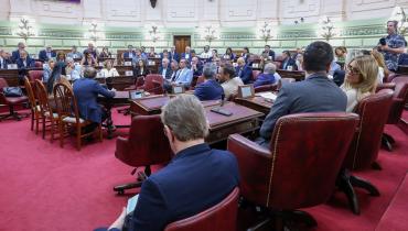 En el recinto de la Cámara de Diputadas y Diputados de Santa Fe se realizó la primer Sesión Conjunta del Período 144, presidida por el Presidente Provisional del Senado, Felipe Michlig. En la misma, senadores, senadora, diputados y diputadas aprobaron el dictamen emitido por la Comisión de Acuerdos por el cual se resuelve reanudar el trámite del procedimiento disciplinario seguido contra el Fiscal Adjunto Dr. Leandro Darío Benegas; establecer la suspensión preventiva temporal de sus funciones con disminución del 50% del sueldo en el ejercicio de Fiscal Adjunto del Ministerio Público de la Acusación de la cuarta Circunscripción Judicial, por el término que dure el procedimiento disciplinario y hasta su total finalización, con expresa prohibición de ingresar al ámbito físico de cualquier dependencia del Ministerio Público de la Acusación de la Provincia de Santa Fe; y suspender el trámite del procedimiento disciplinario por la causal de eventual delito doloso, reanudando el procedimiento si a juicio de la Comisión surgieren elementos que ameriten proseguir el mismo en razón del avance procesal de las causas penales seguidas contra el Fiscal Adjunto Dr. Leandro Darío Benegas.