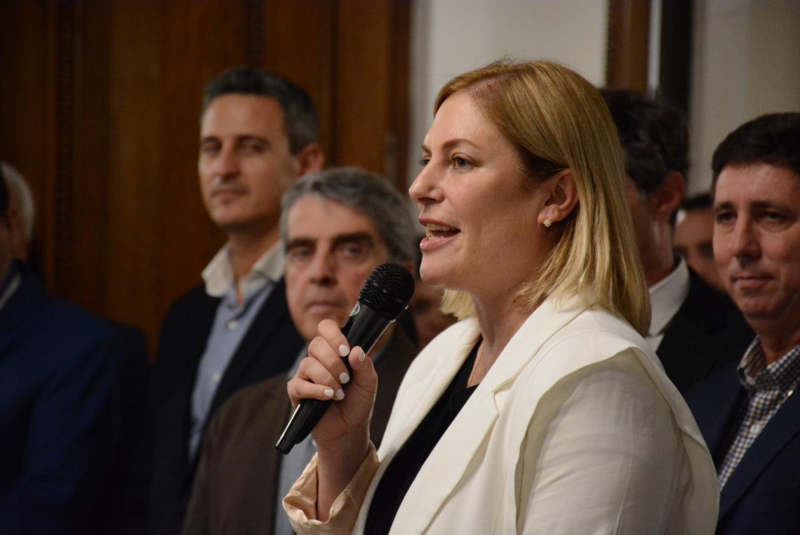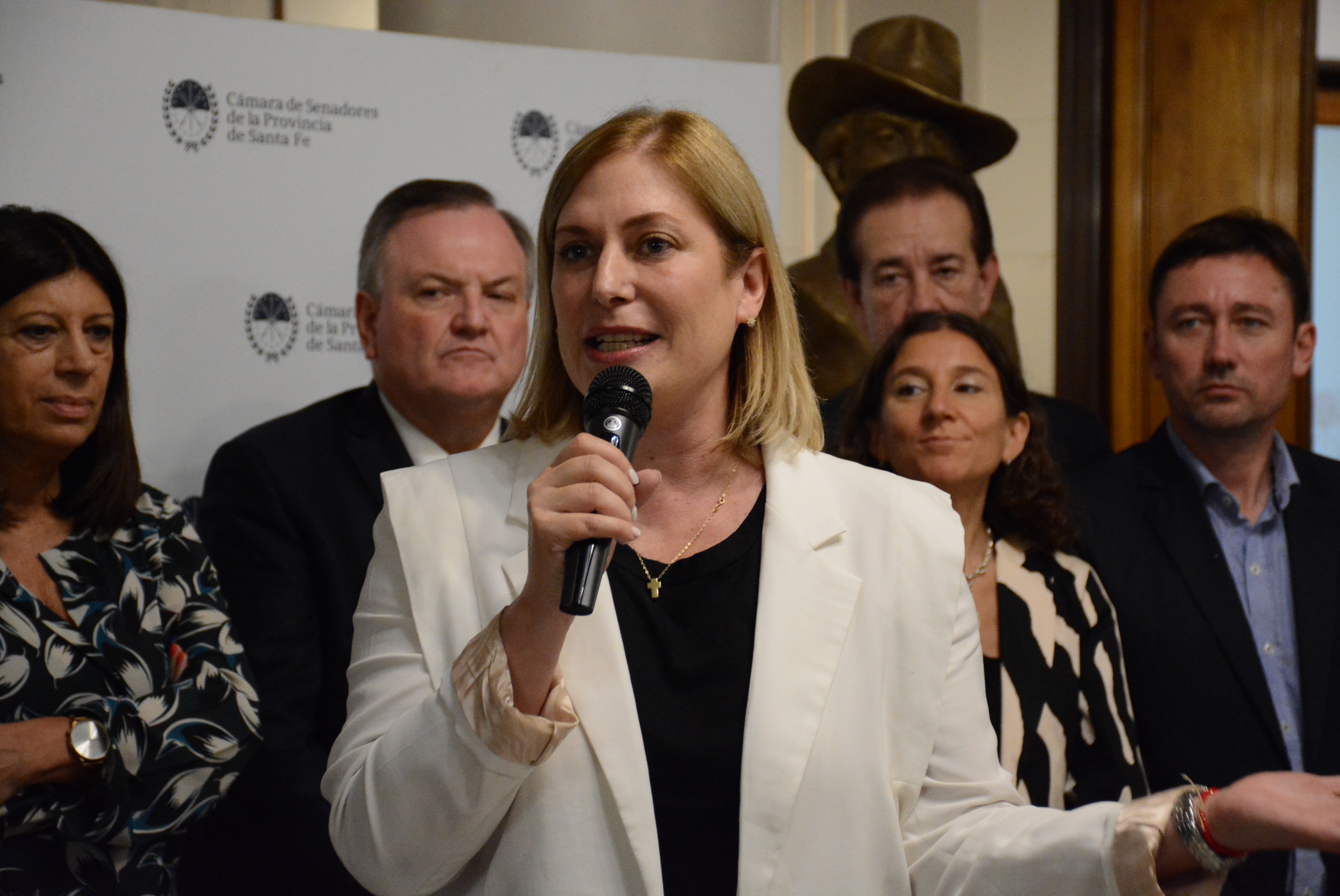 La presidente del Senado estuvo acompañada por legisladores de todos los bloques que componen el Cuerpo y por su par de la Cámara de Diputadas y Diputados, Clara García.